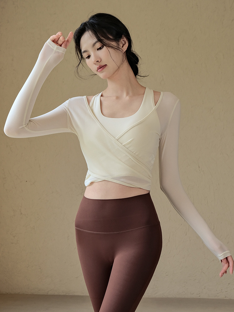 요가 의류 여성의 가을과 겨울 스포츠 탑 메쉬 통기성 겉옷 슬리밍 달리기 긴 소매 필라테스 훈련 피트니스 의류스토어 가기