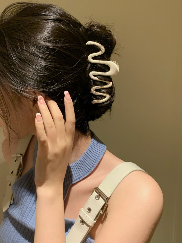 웨이브 상어 클립 도파민 잡아 클립 대형 프리미엄 캔디 컬러 클립 디자인 머리핀 물 리플 모자