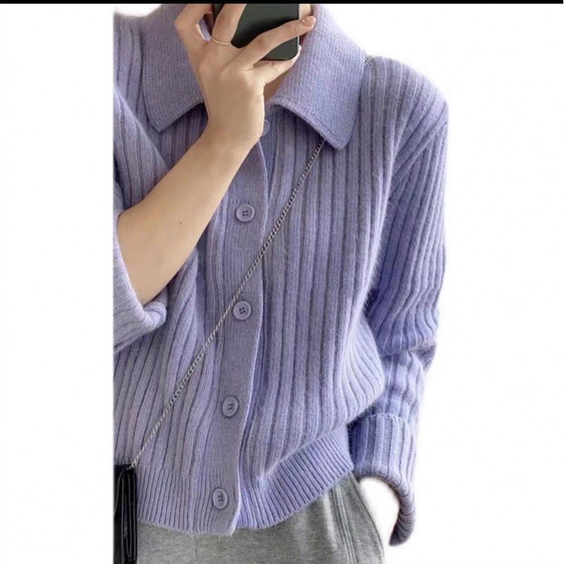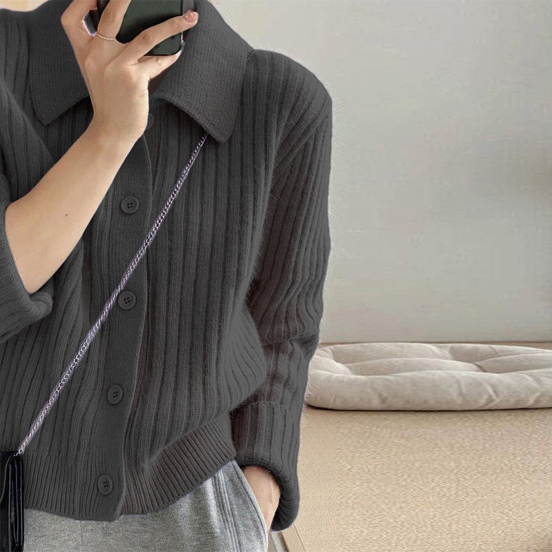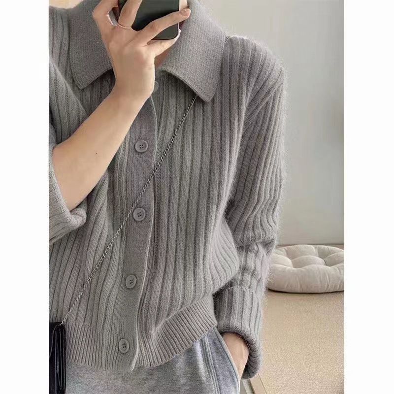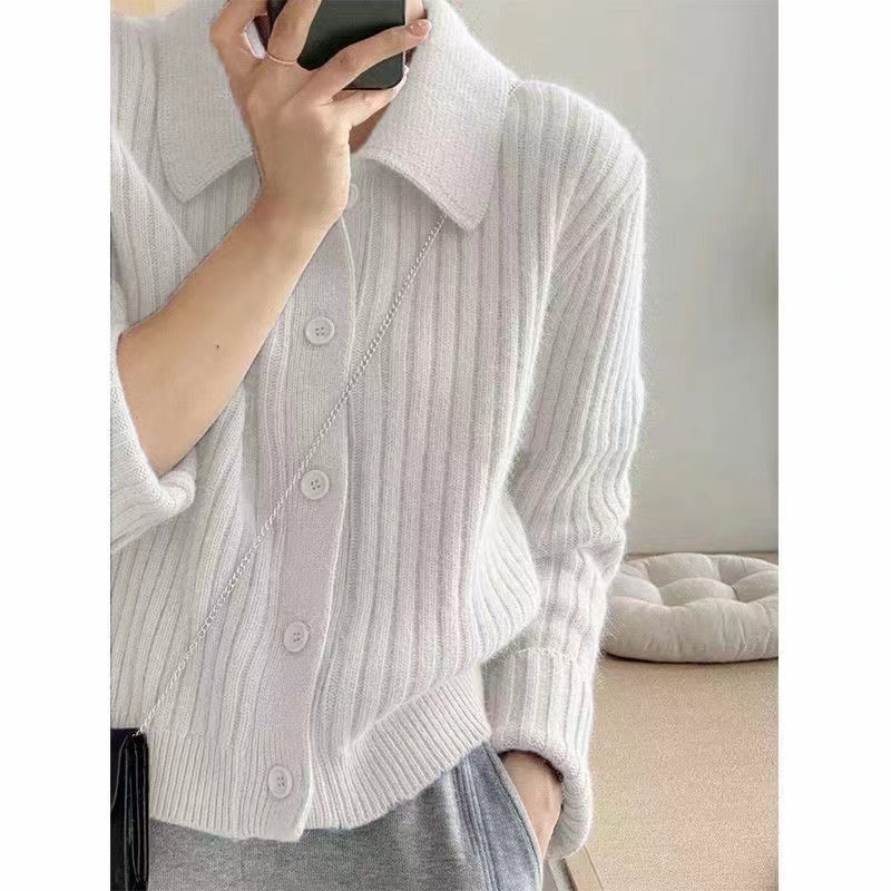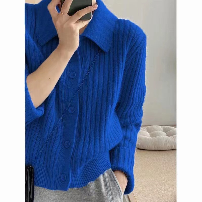 KANING 심플한 소형 폴로 칼라 니트 가디건 여성용 2025 가을 신상 한국 스타일 짧은 단색 상의스토어 가기