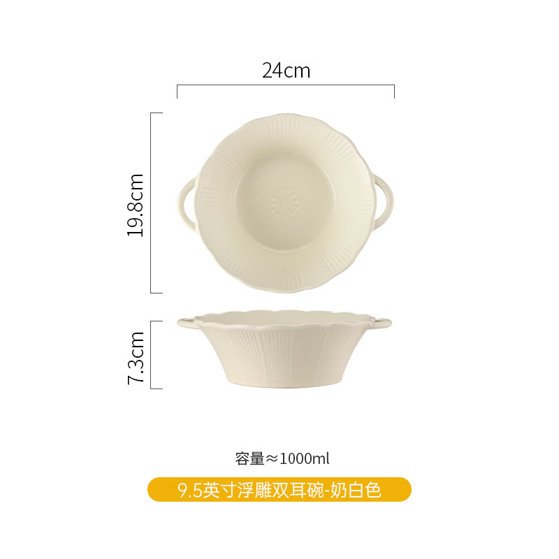 • 로즈 더블 이어 릴리프 보울 우유 화이트