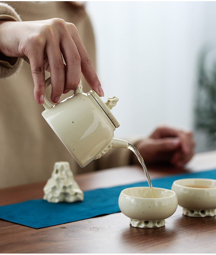 새로운 중국 창조적 인 호수 돌 4 잔의 한 냄비 쿵푸 차 세트 세트 선물 고객 및 직원 비즈니스 동반 선물스토어 가기