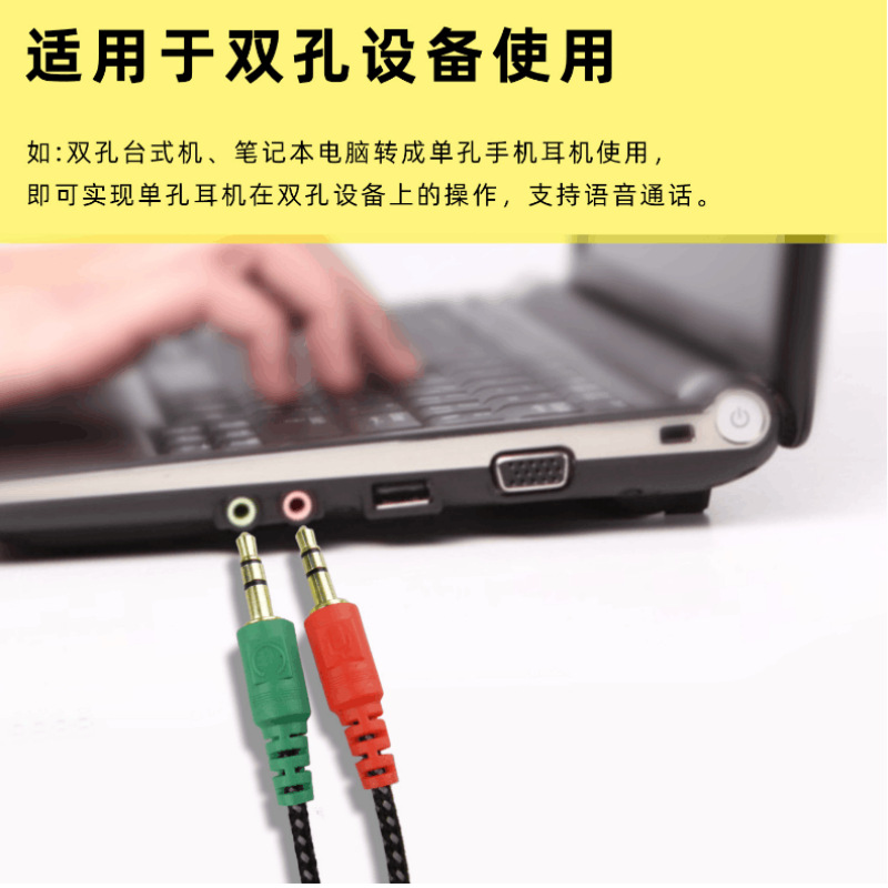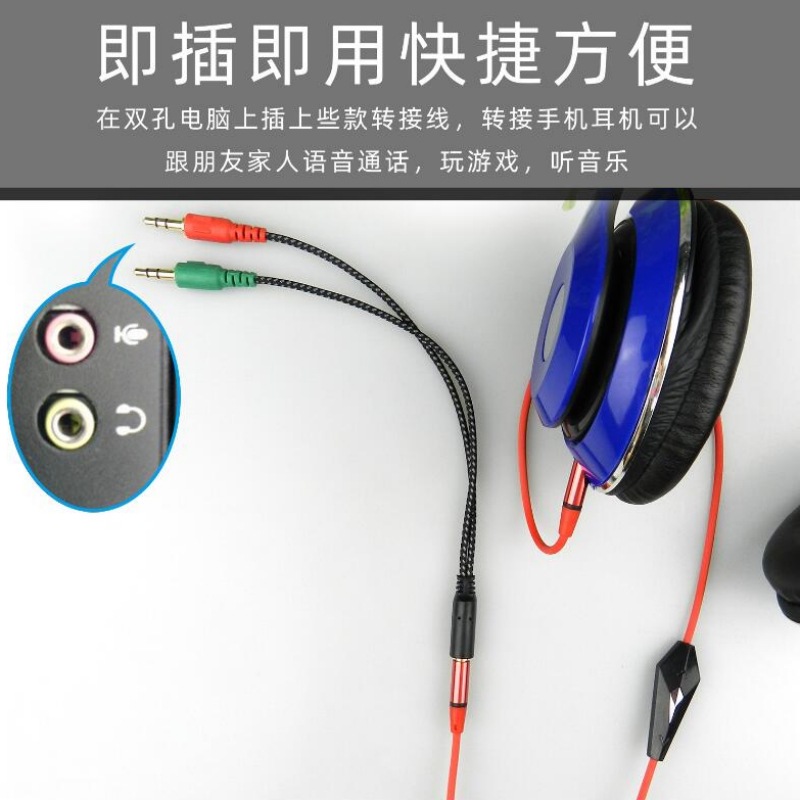 接口:3.5mm公转二个3.5mm母(耳机+麦克风)默认发镀镍插针