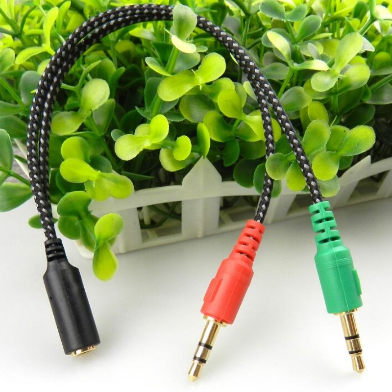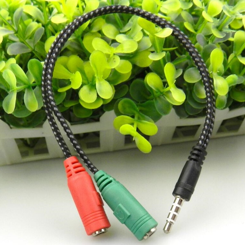 사출 성형 짠 휴대 전화 노래방 오디오 케이블 3.5 남성 회전 여성 붉은 녹색 2 분 헤드셋 마이크 오디오 변환 케이블스토어 가기
