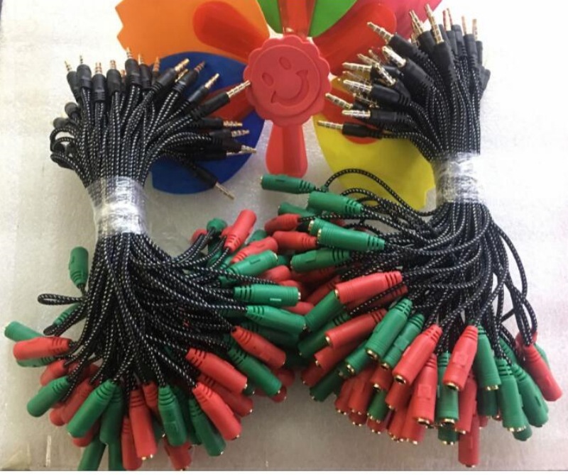 사출 성형 짠 휴대 전화 노래방 오디오 케이블 3.5 남성 회전 여성 붉은 녹색 2 분 헤드셋 마이크 오디오 변환 케이블