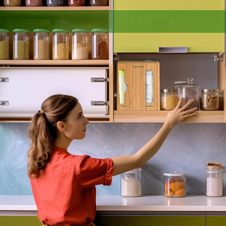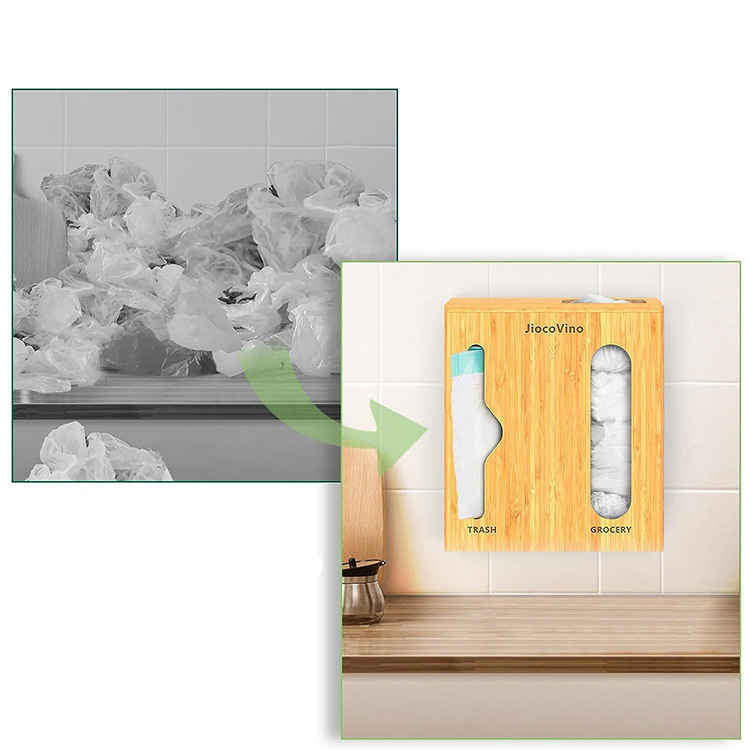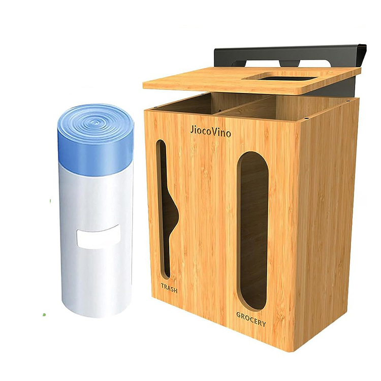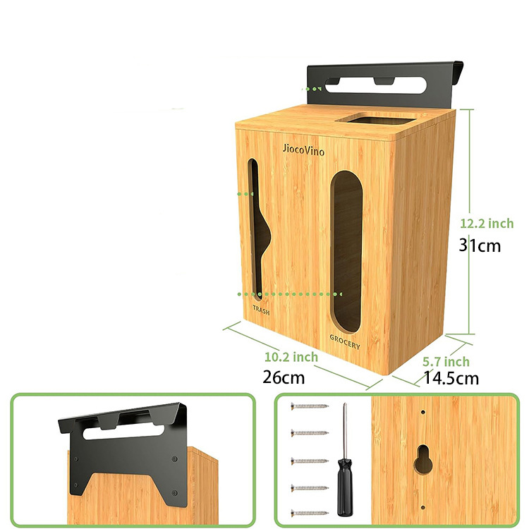 국경 간 대나무 주방 보관 선반 주방 벽걸이 쇼핑 가방 보관 상자 나무 쓰레기 봉투 정리 보관 상자