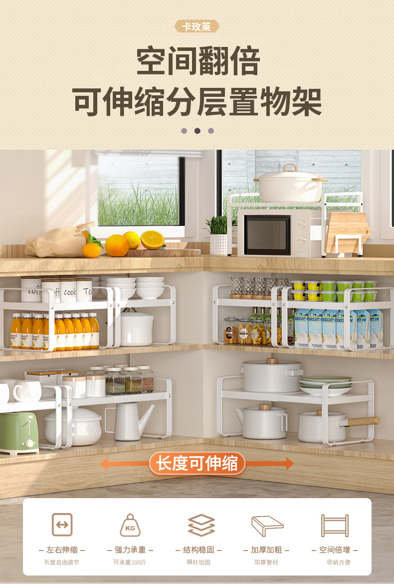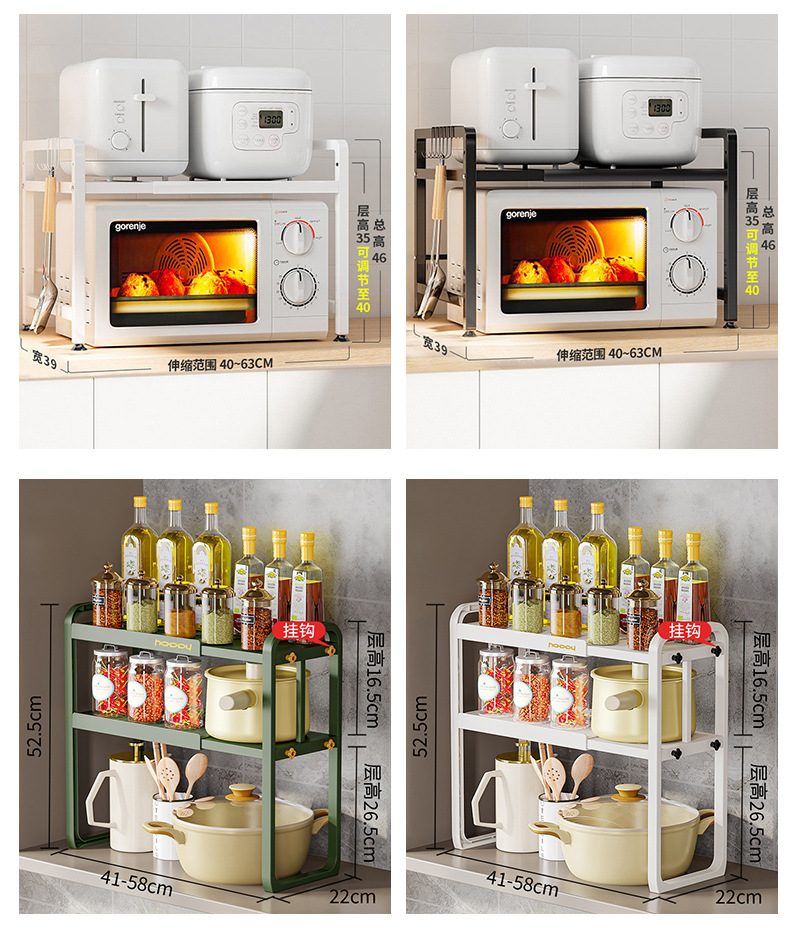 싱크대, 접시, 조미료, 조리대 수납, 전자레인지 선반, 수납 선반 아래 접이식 주방 레이어드 수납 선반