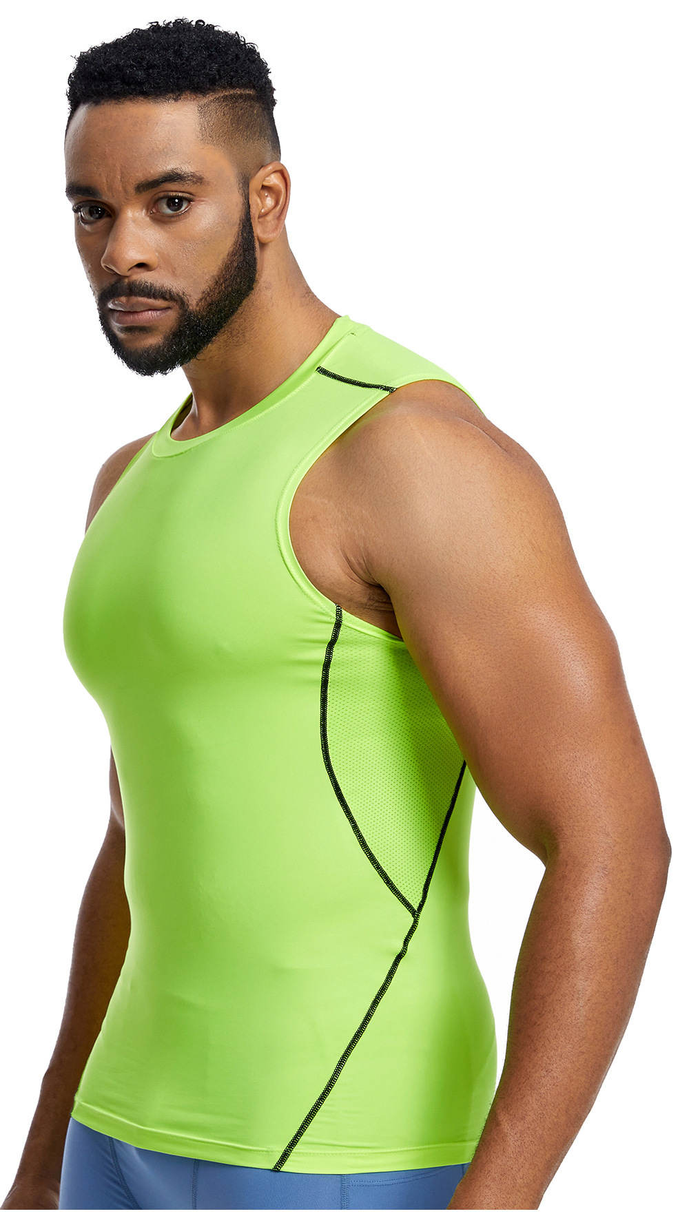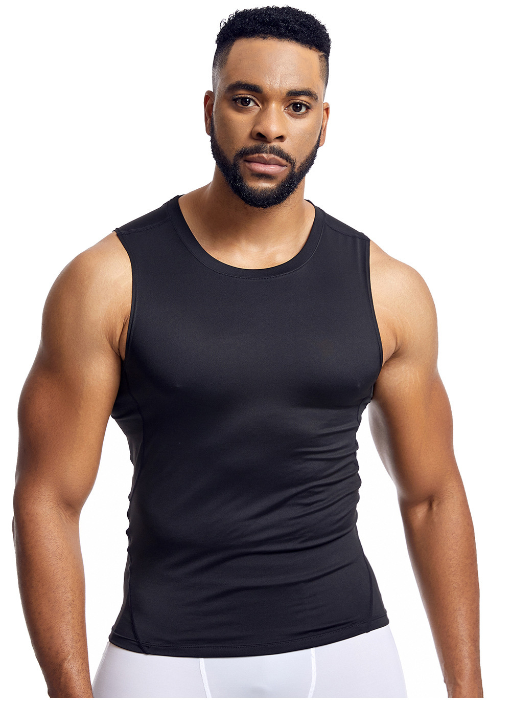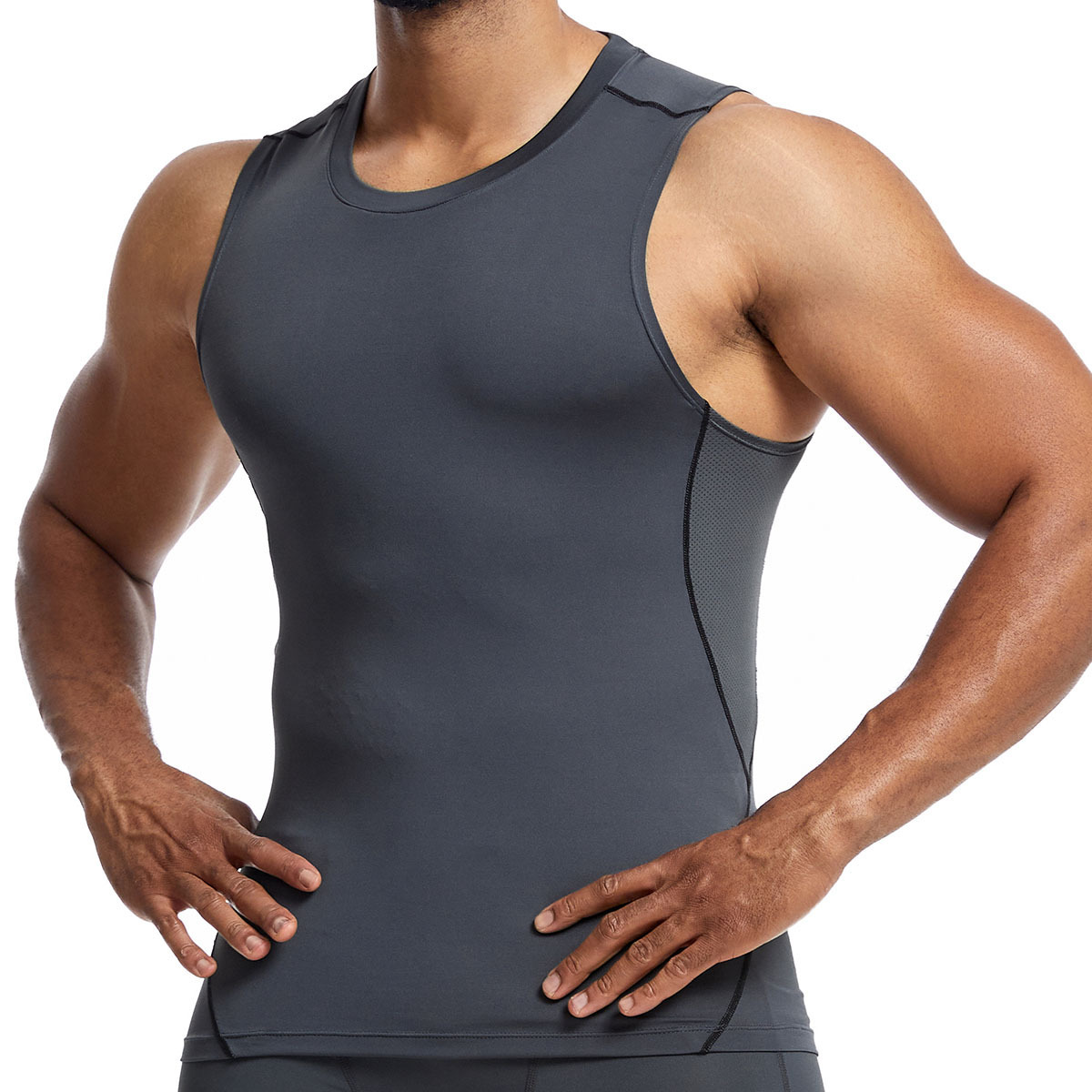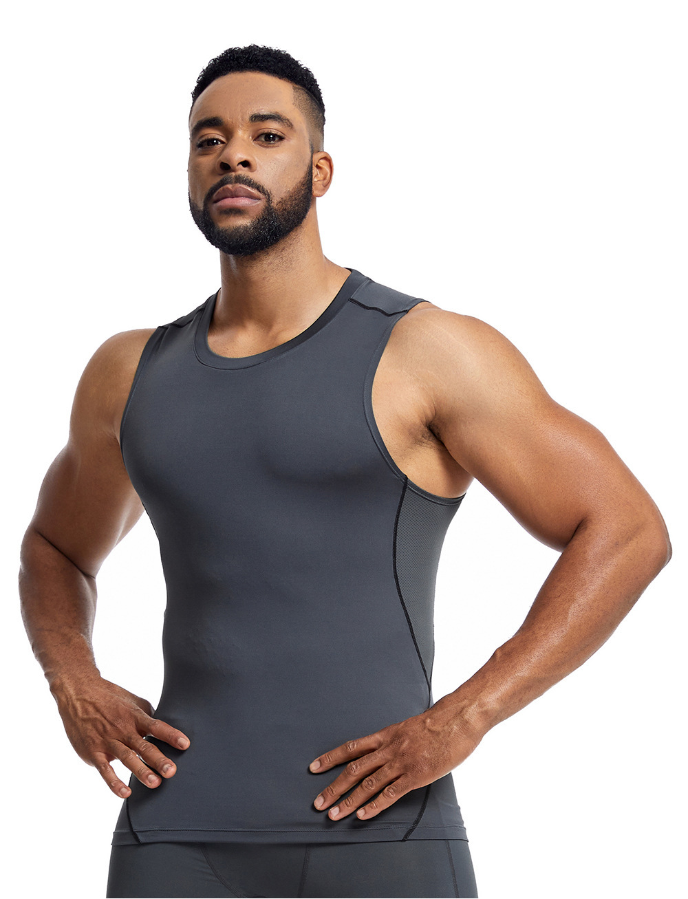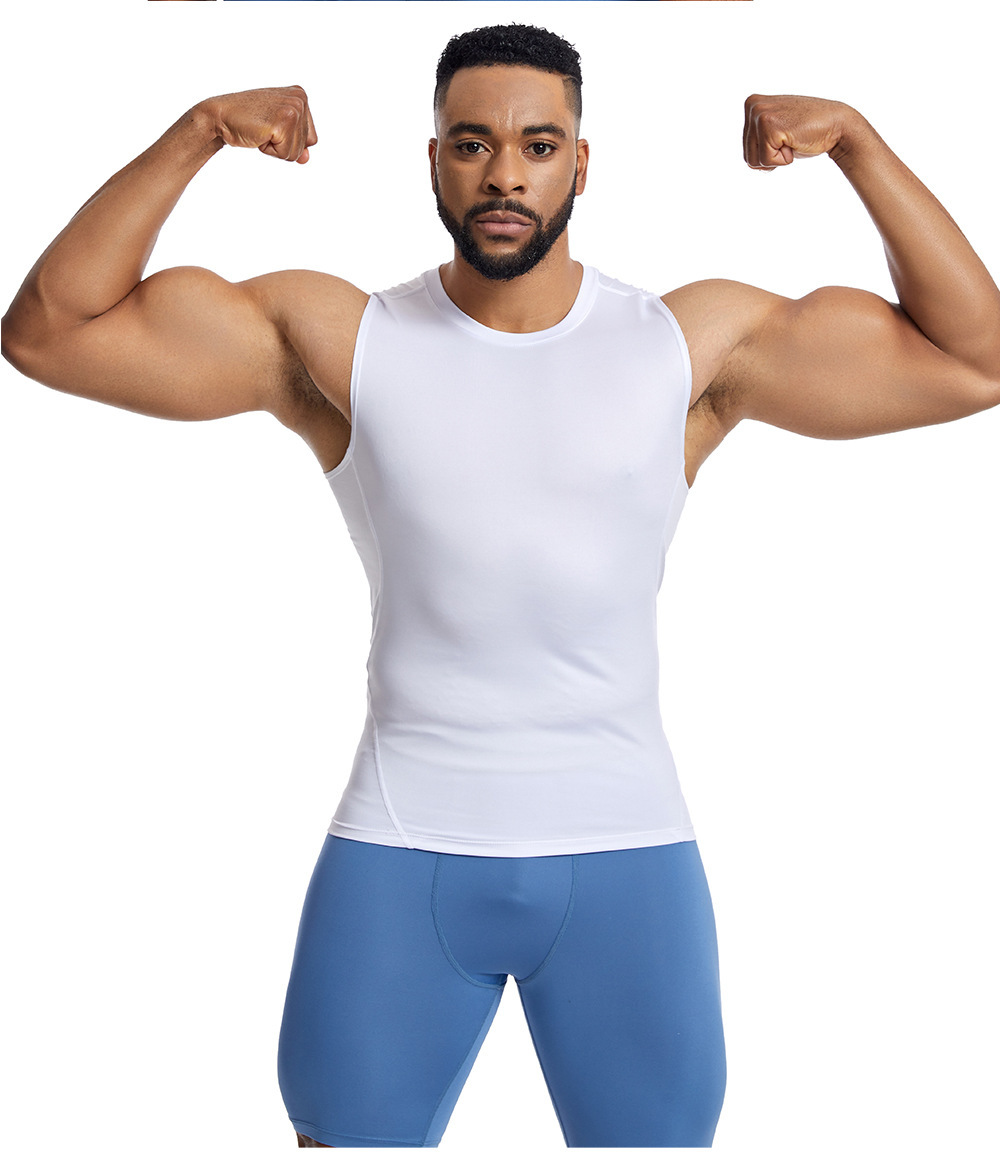 아마존 남성 조끼 타이트 탑 라인 라운드 넥 민소매 탑 땀 피트니스 트레이닝 속건 조끼 스포츠 탑