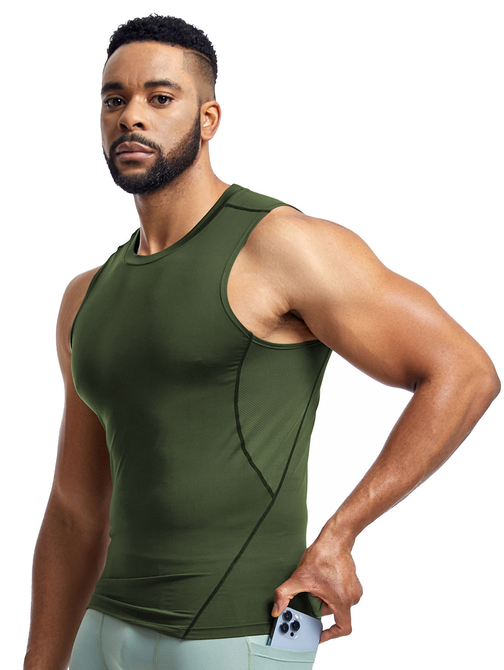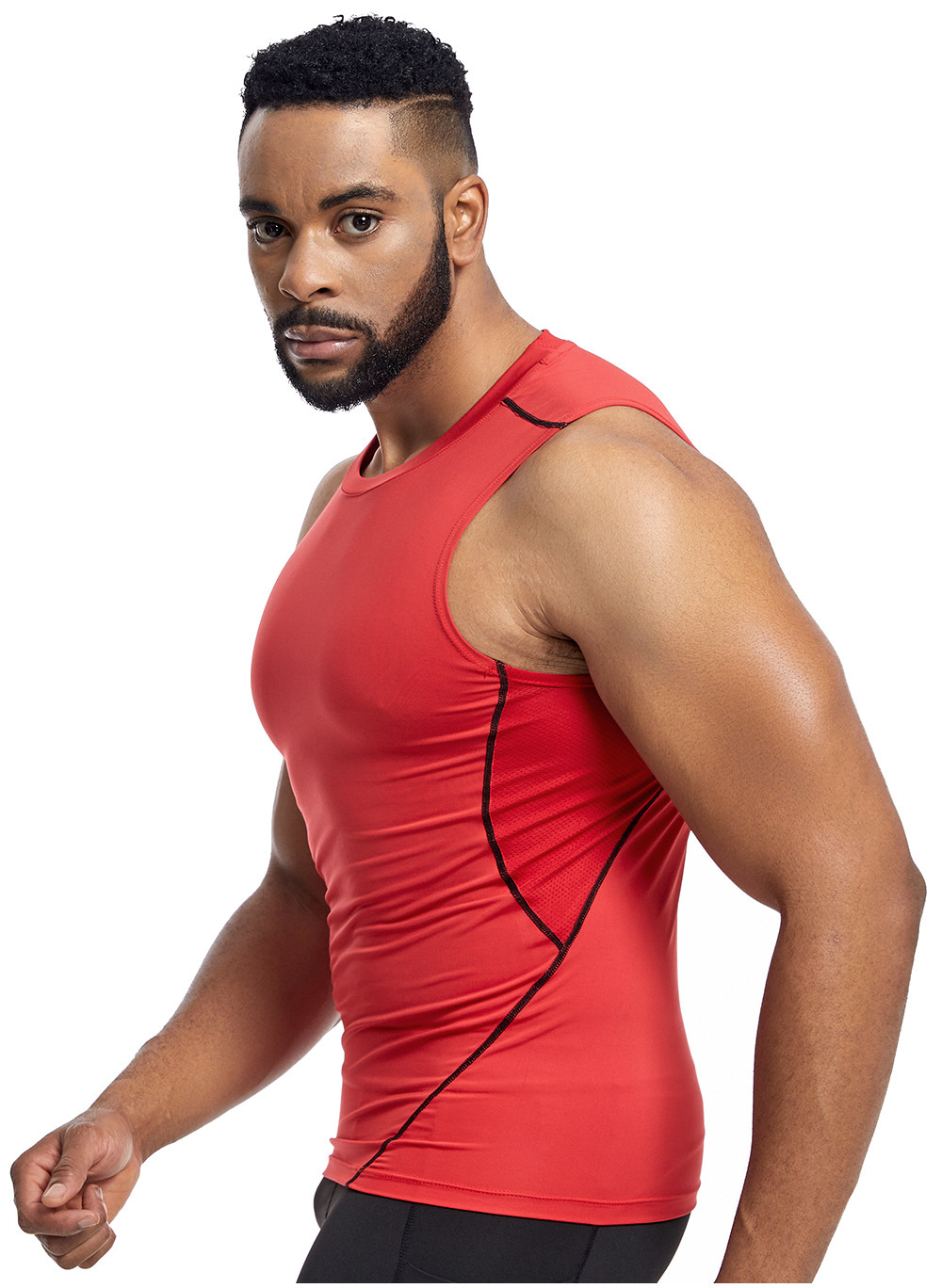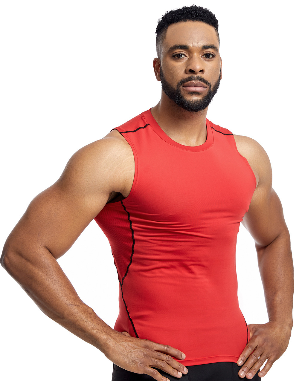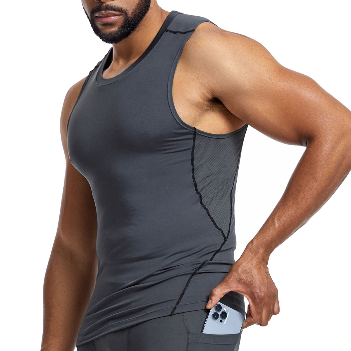 아마존 남성 조끼 타이트 탑 라인 라운드 넥 민소매 탑 땀 피트니스 트레이닝 속건 조끼 스포츠 탑