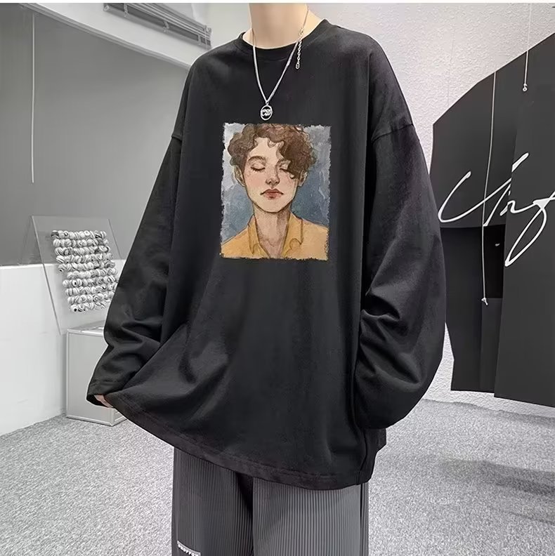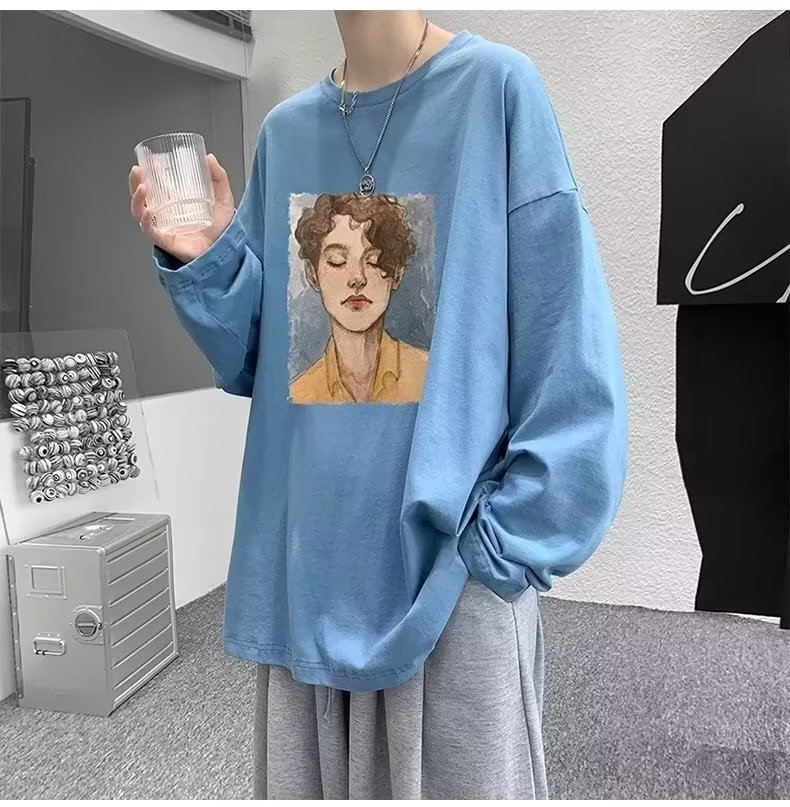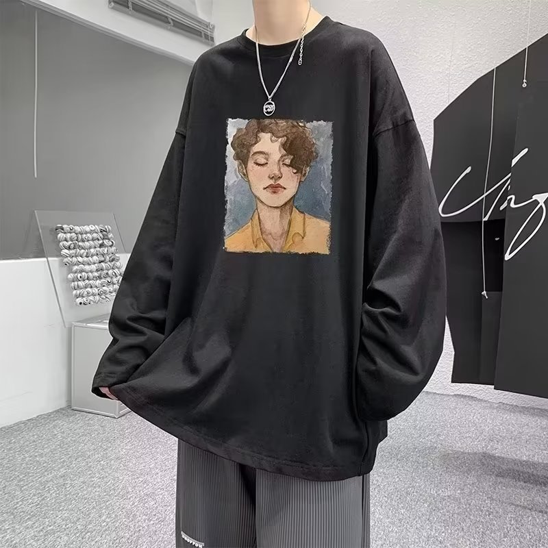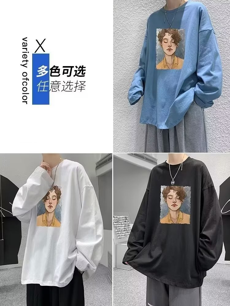 흰색 긴팔 티셔츠 남성용 가을 심플 루즈한 캐주얼 커플 베이스 셔츠 패션 브랜드 홍콩 스타일 올매치 탑스토어 가기