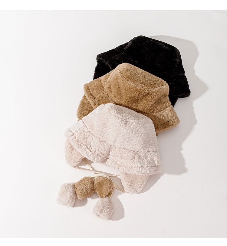 토끼 모피 모자 여성용 가을과 겨울 한국식 모든 경기 얼굴을 보여주는 작은 어부 모자 탈착식 귀 보호 따뜻한 봉제 방한 냄비 모자