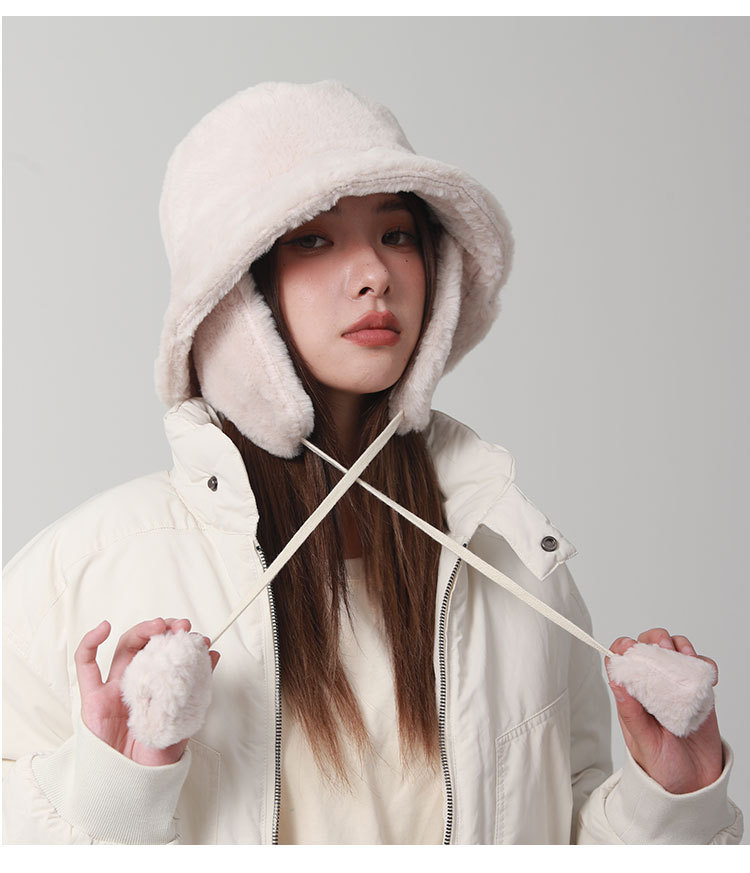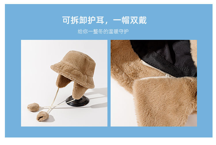 토끼 모피 모자 여성용 가을과 겨울 한국식 모든 경기 얼굴을 보여주는 작은 어부 모자 탈착식 귀 보호 따뜻한 봉제 방한 냄비 모자스토어 가기