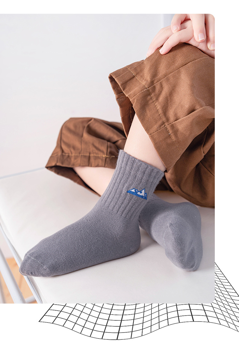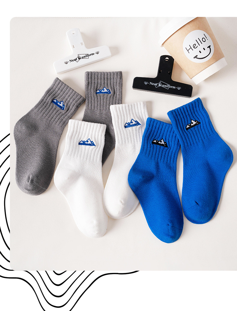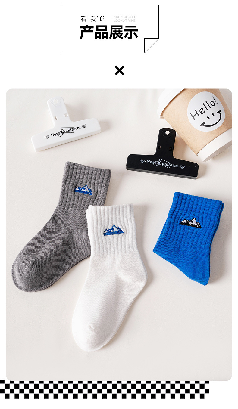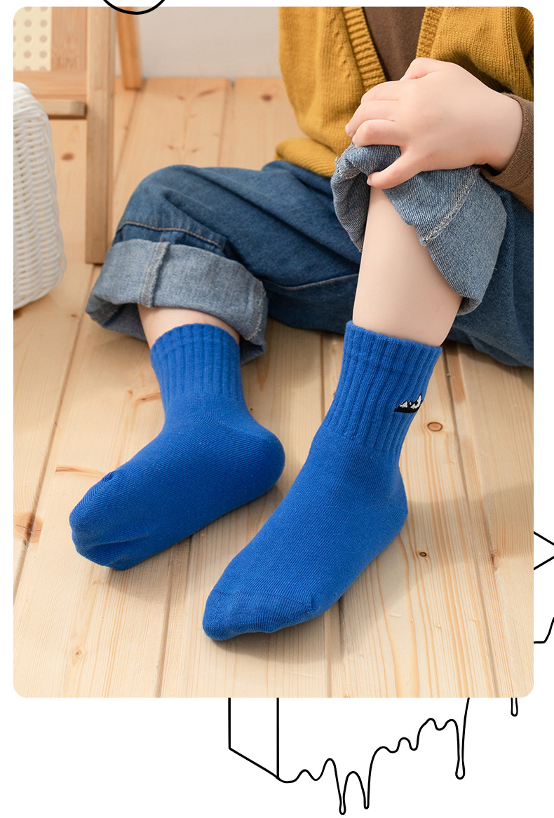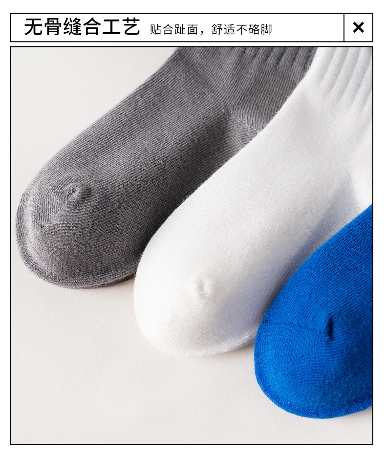 2025년 신상 아동용 양말 A급 가을 중대형 아동용 면 양말 무봉제 손바느질 흰색 단색 땀 흡수 중간 길이 양말