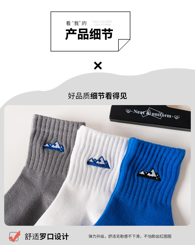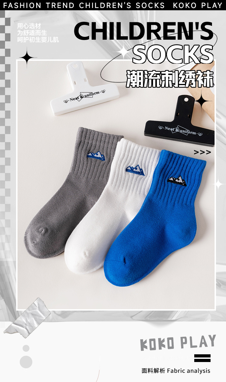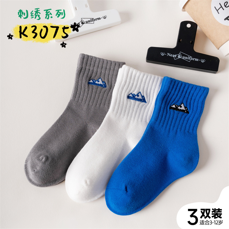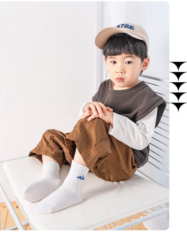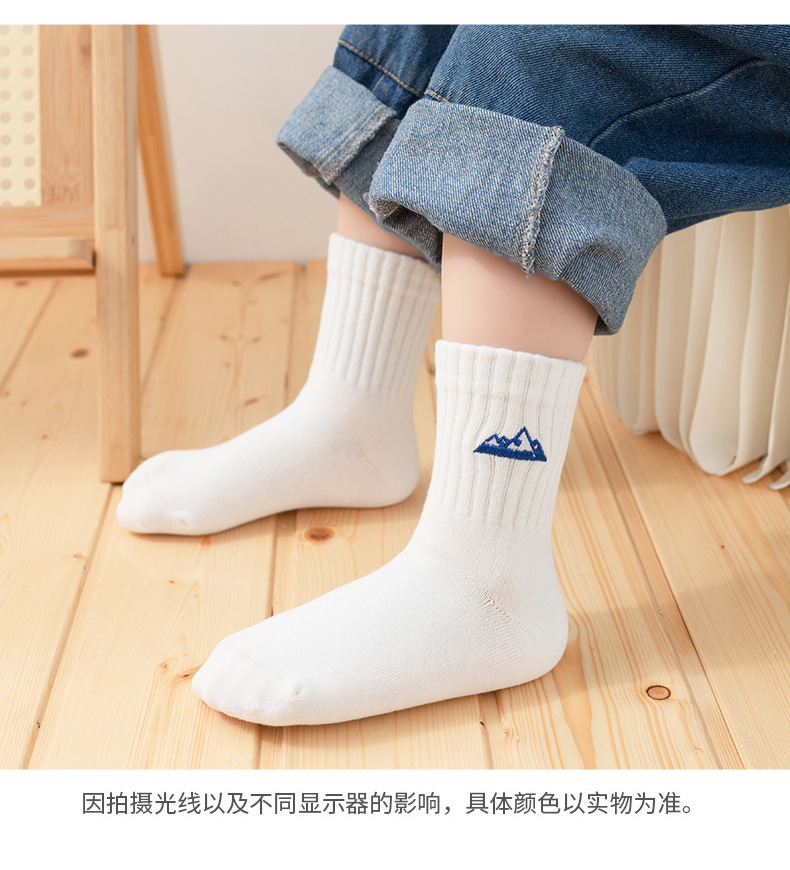2025년 신상 아동용 양말 A급 가을 중대형 아동용 면 양말 무봉제 손바느질 흰색 단색 땀 흡수 중간 길이 양말스토어 가기