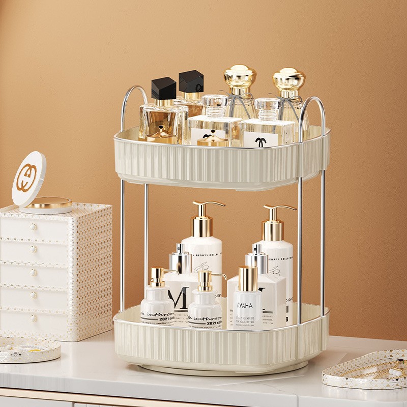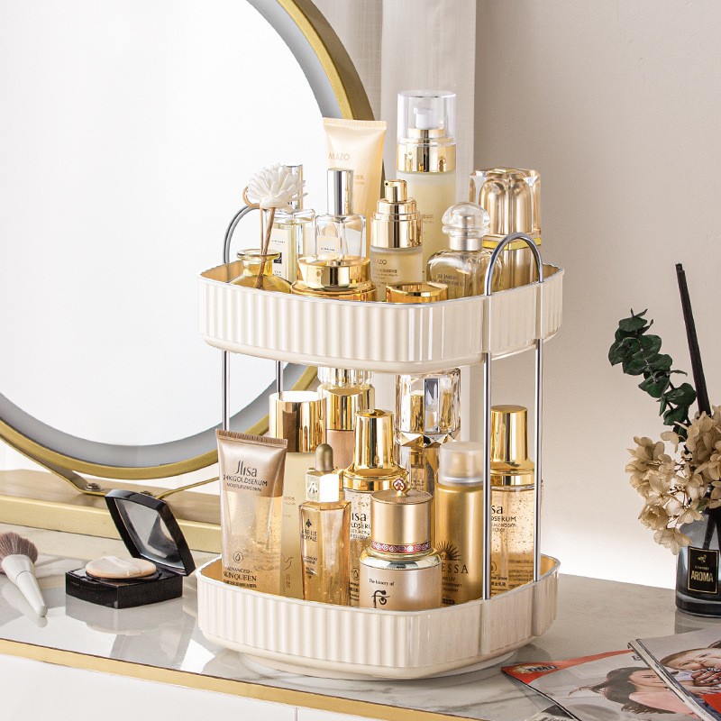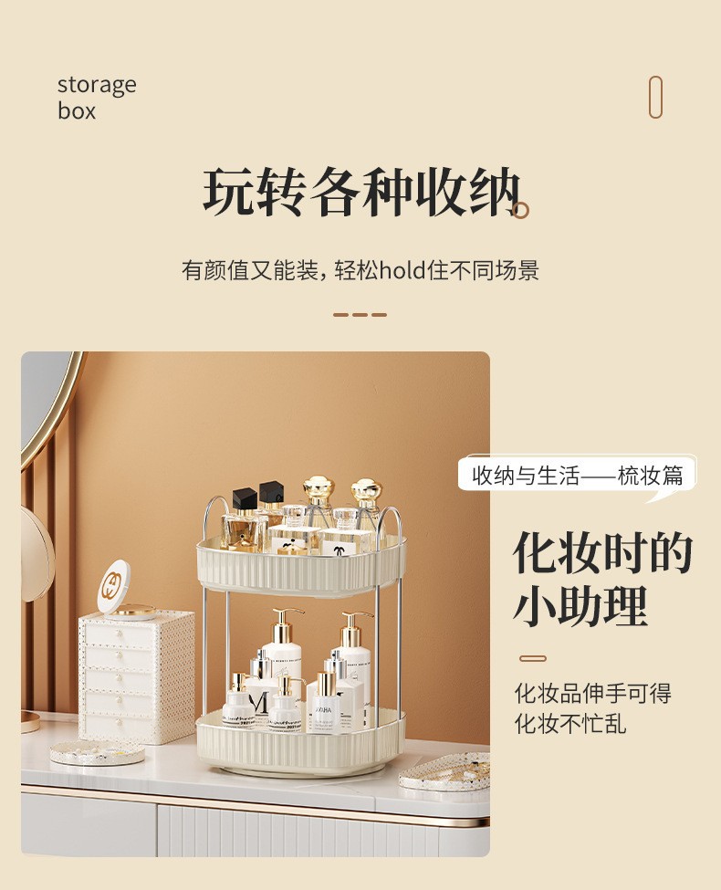 가정용 조명 고급 화장품 보관함 펀치 프리 욕실 랙 세면대 침실 회전 욕실 수납 랙스토어 가기