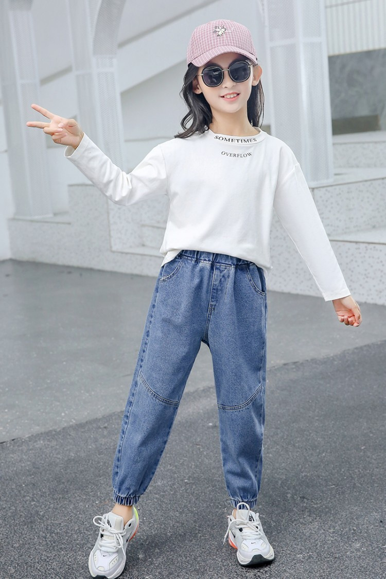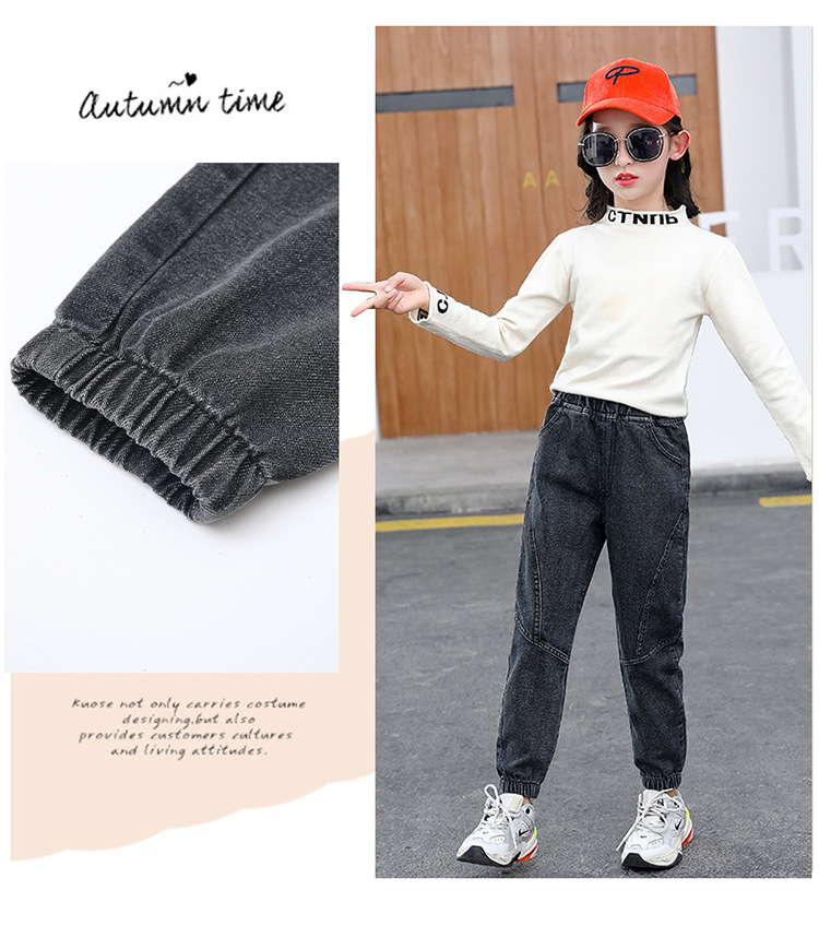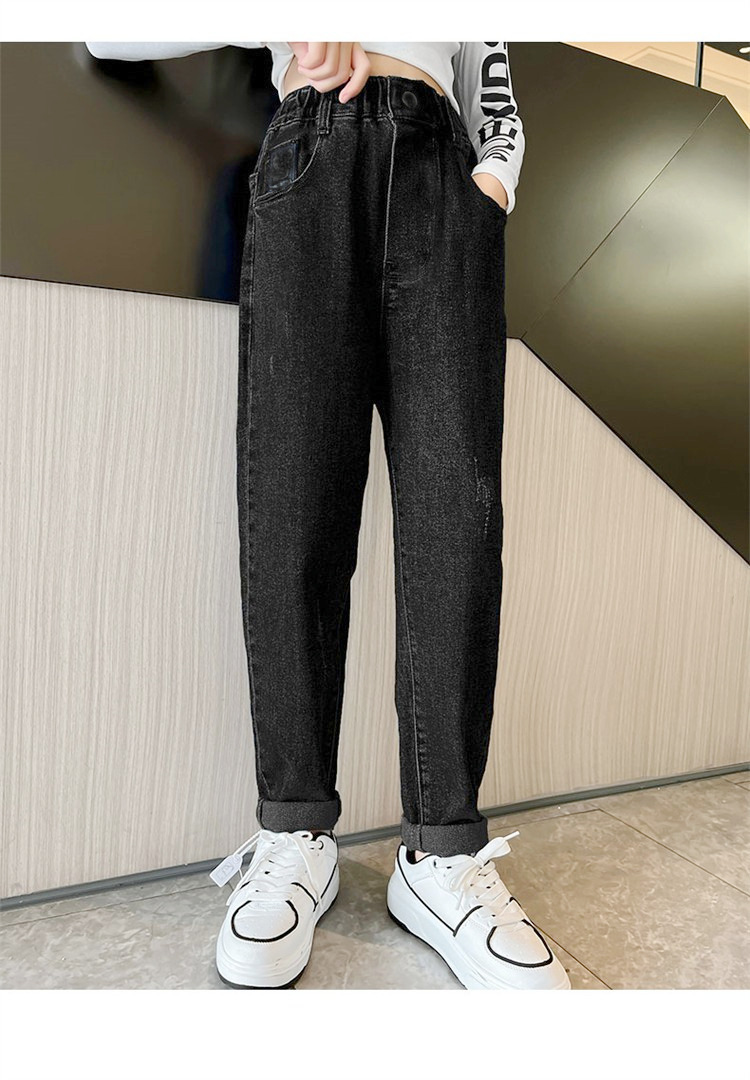 아동복 여아 청바지 봄과 가을 2023 새로운 중대형 어린이 어린 소녀 세련된 바지 어린이 검은 바지스토어 가기