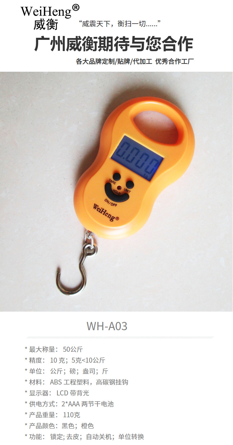 WeiHeng WH-A03 가정용 전자 저울 50kg MIKADO 낚시 저울