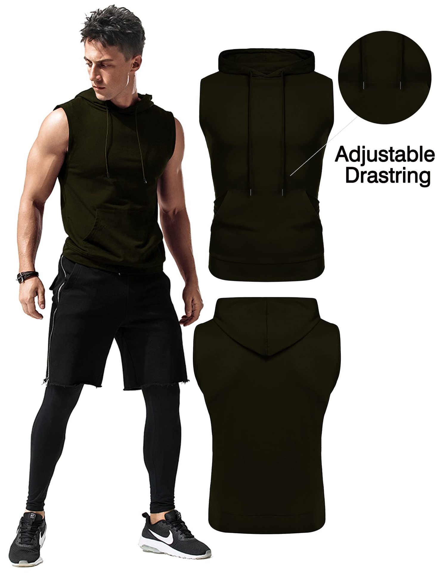 아마존 남성용 조끼 까마귀 민소매 루즈 솔리드 컬러 포켓 피트니스 근육 트레이닝 러닝 스포츠 탑