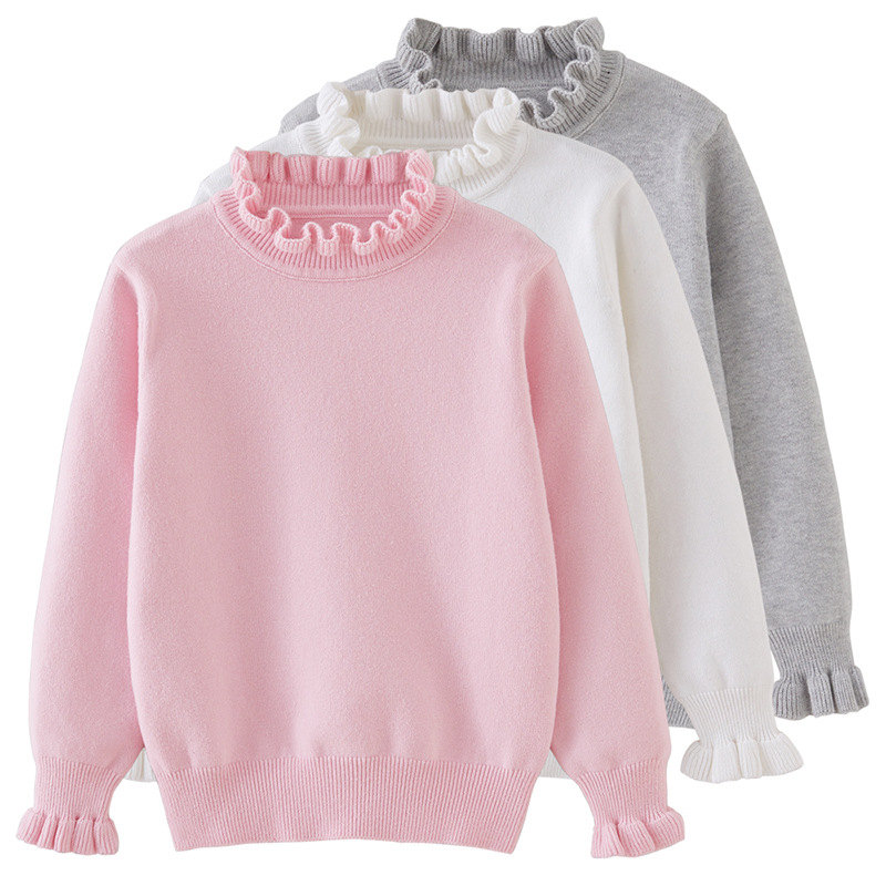 2024 가을과 겨울 터틀넥 스웨터 소녀 나무 귀 풀오버 기본 스웨터 어린이 스웨터 따뜻한 도매스토어 가기