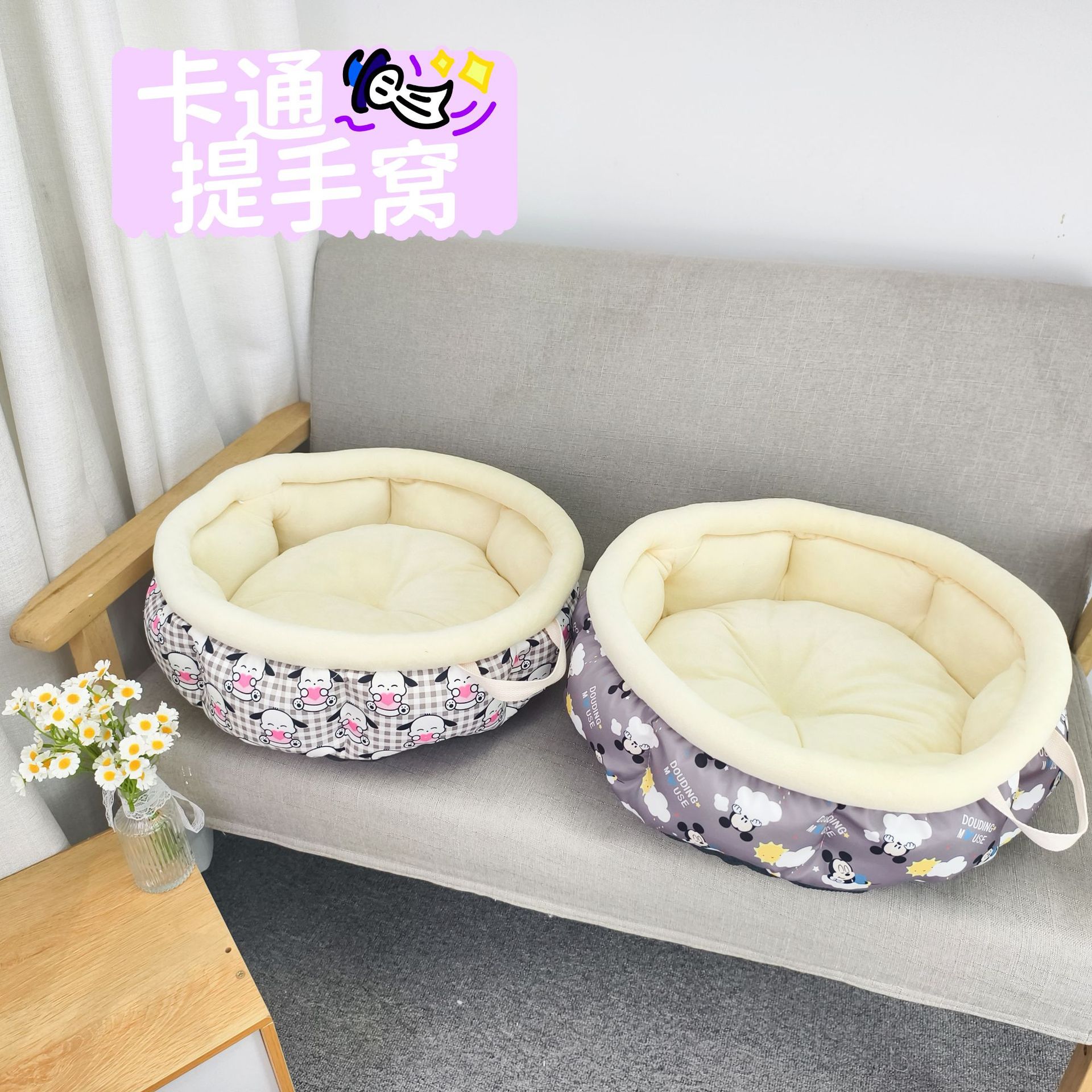 새로운 휴대용 프린트 애완동물 침대 원형 개집 고양이집 가을 겨울용 면 침대 겨울용 깊은 고양이 침대스토어 가기