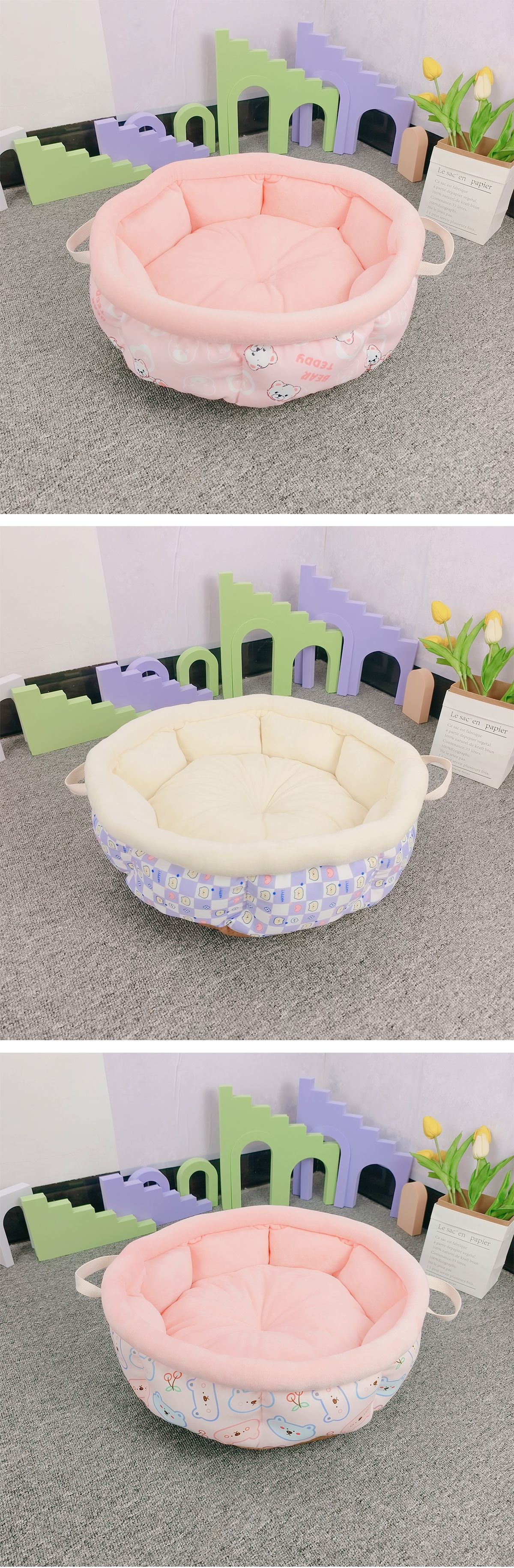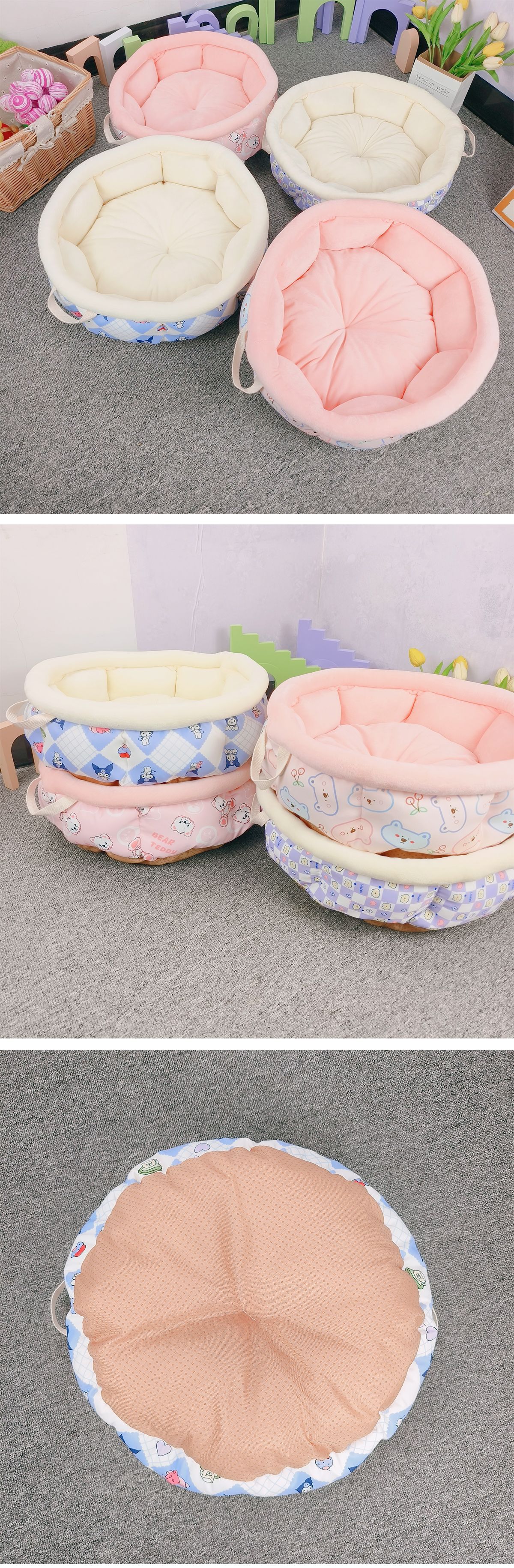 새로운 휴대용 프린트 애완동물 침대 원형 개집 고양이집 가을 겨울용 면 침대 겨울용 깊은 고양이 침대