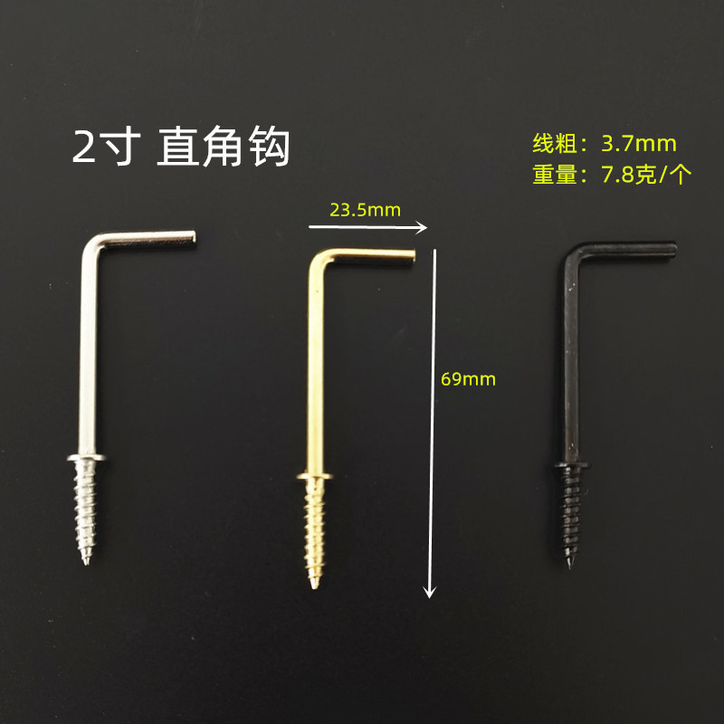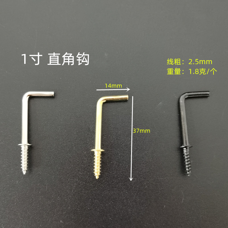 공장에서 제공하는 크로스보더 직각 후크 금색, 은색, 검정색 다양한 크기의 L자형 금속 후크 삽입형 행거 나사형 후크