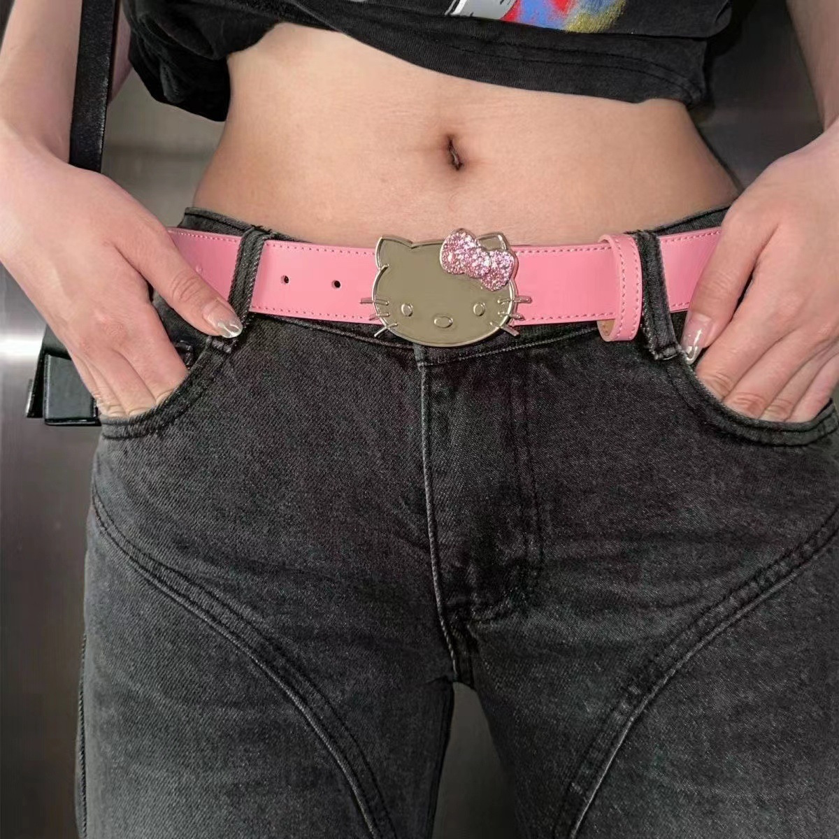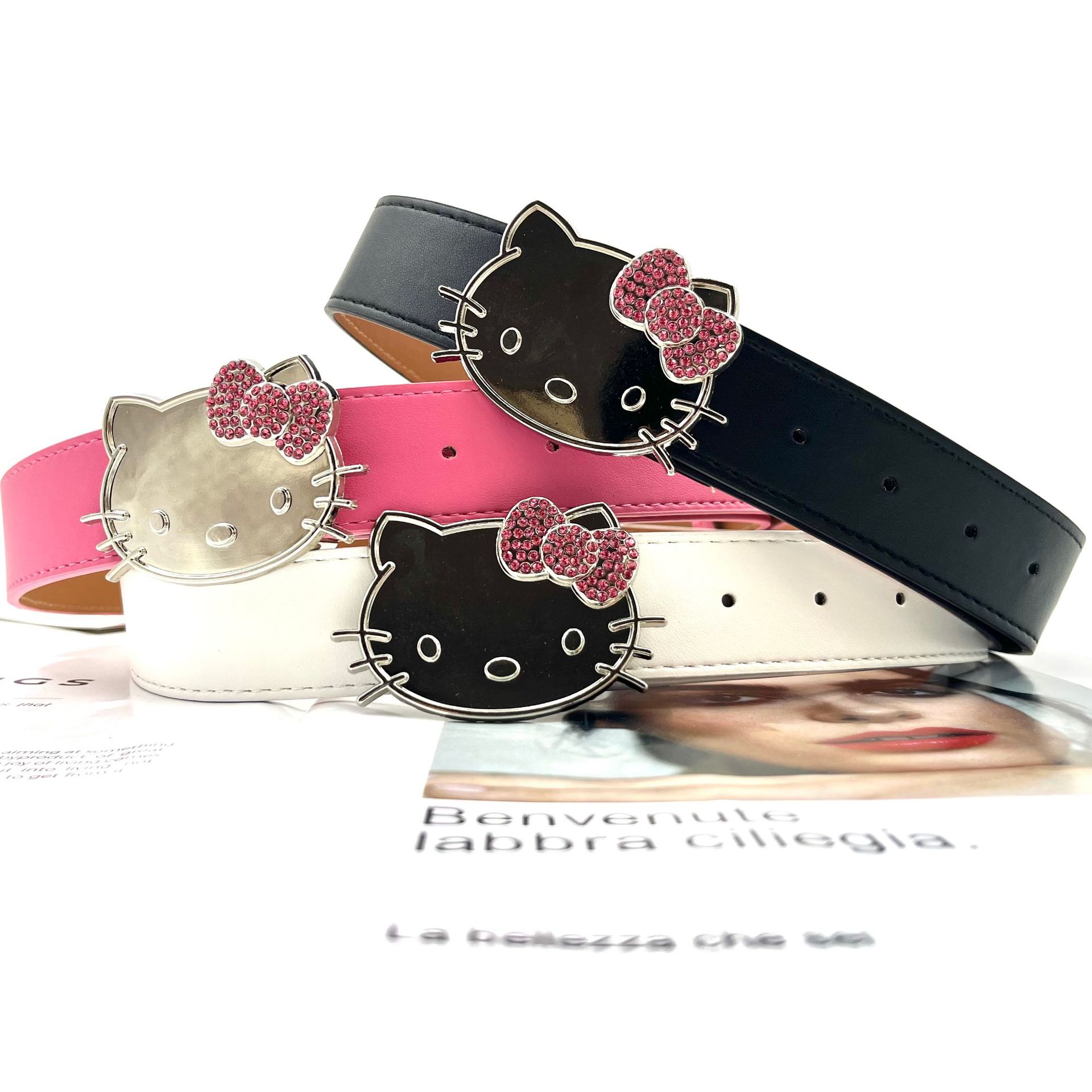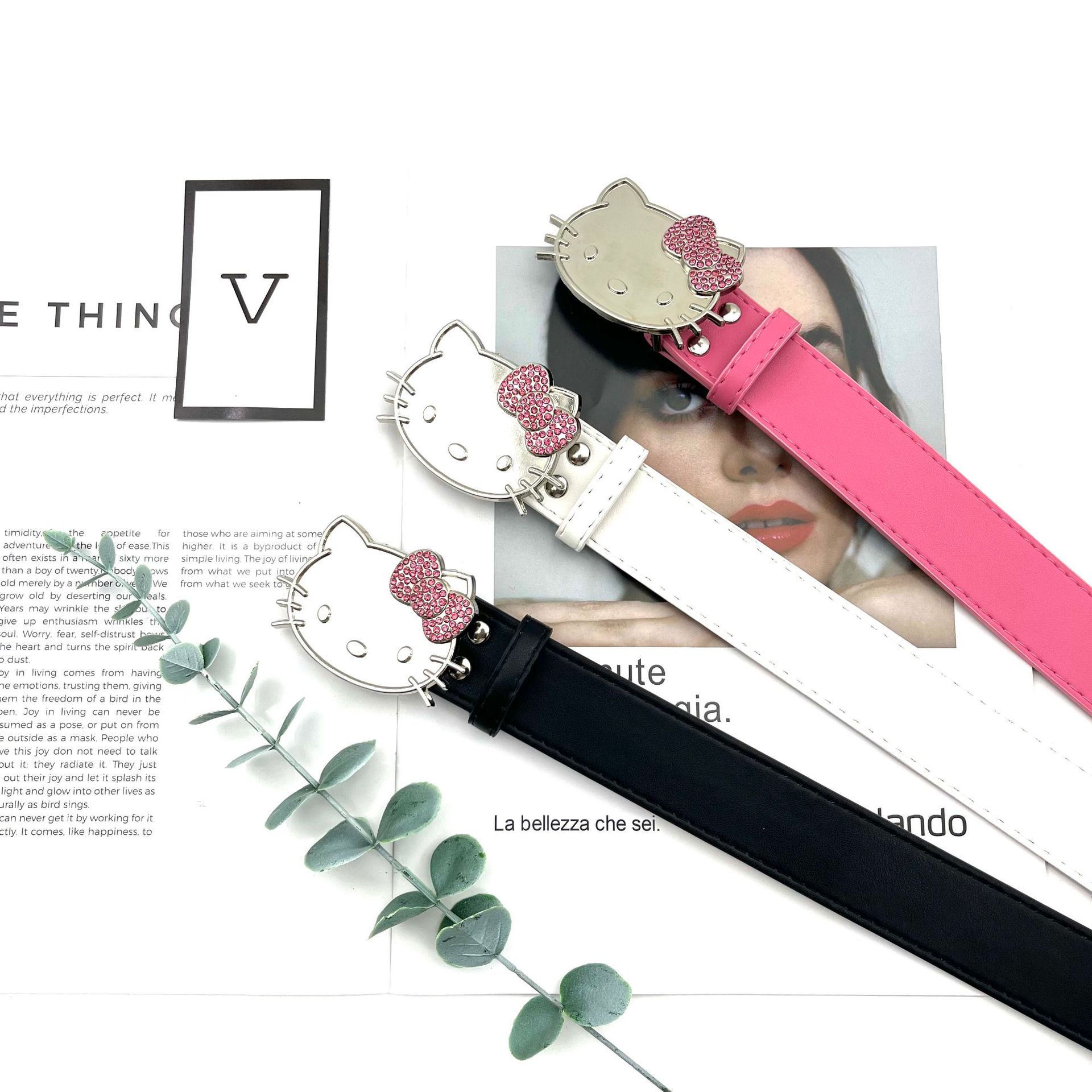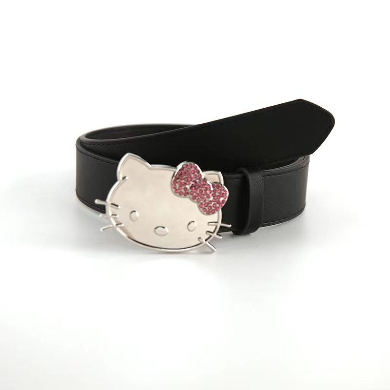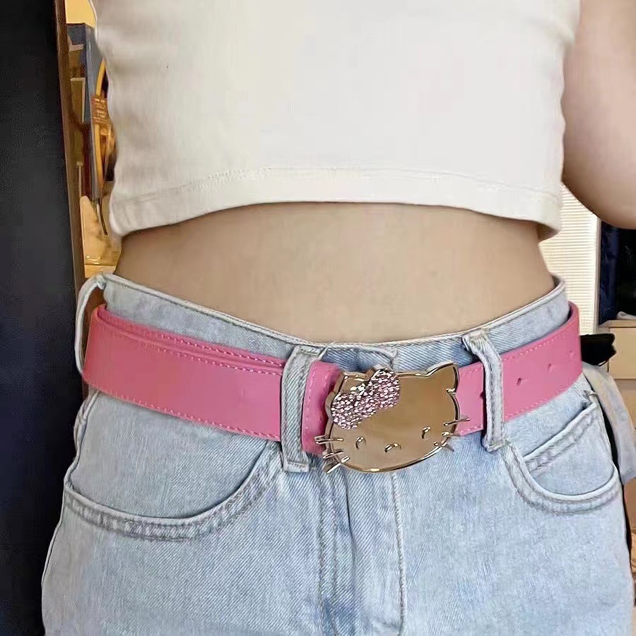 트렌디 한 새로운 KT 고양이 머리 버클 벨트 밀레니엄 스파이스 걸스 서브 컬처 청바지 스커트 액세서리 패션 올 매치 벨트