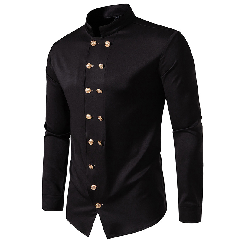 아마존 남성 더블 브레스트 스탠드 칼라 긴팔 셔츠 헨리 셔츠 C27