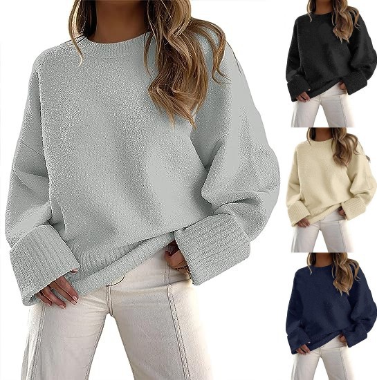 새로운 국경 니트 핫 세일 2023 가을 및 겨울 유럽과 미국 올 매치 스트리트 스타일 크루 넥 풀오버 스웨터 루즈 여성