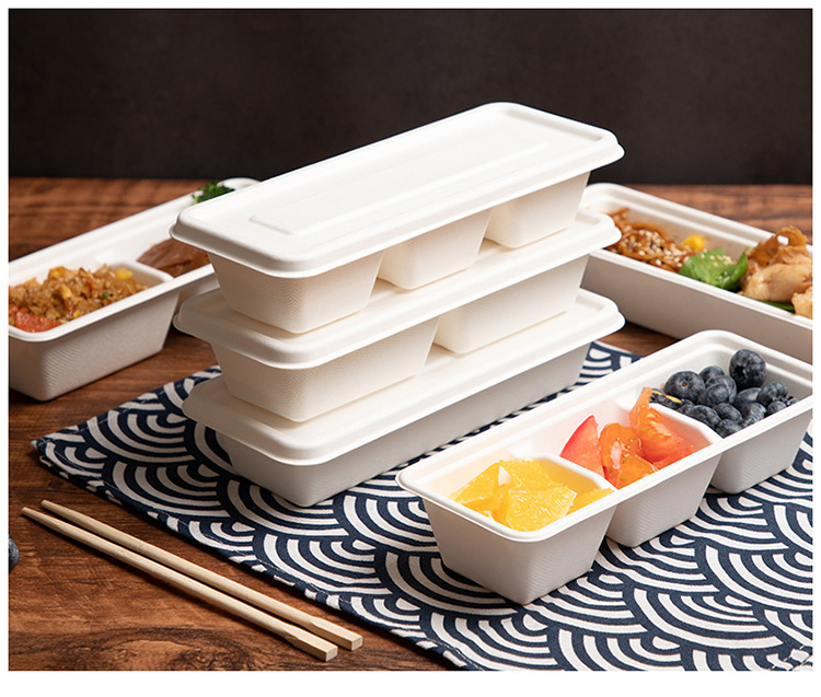 • 600ml 두꺼운 천연 컬러 스트립 2 칸 상자