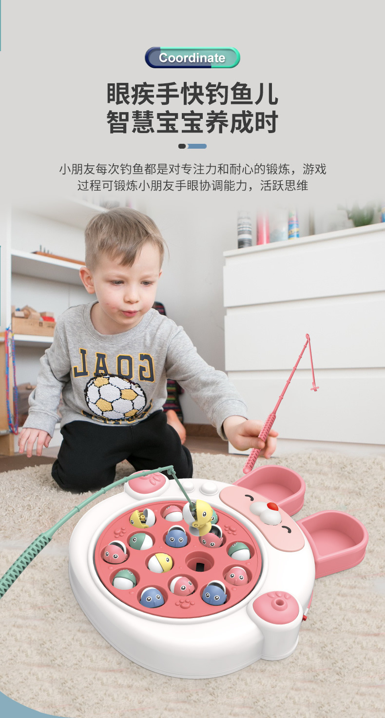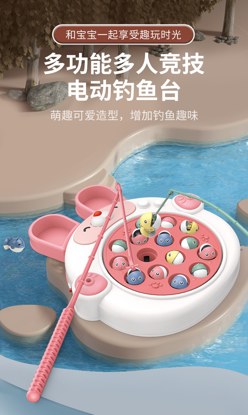 새로운 만화 토끼 곰 전기 회전 낚시 접시 어린 아이들을위한 대화 형 게임 장난감