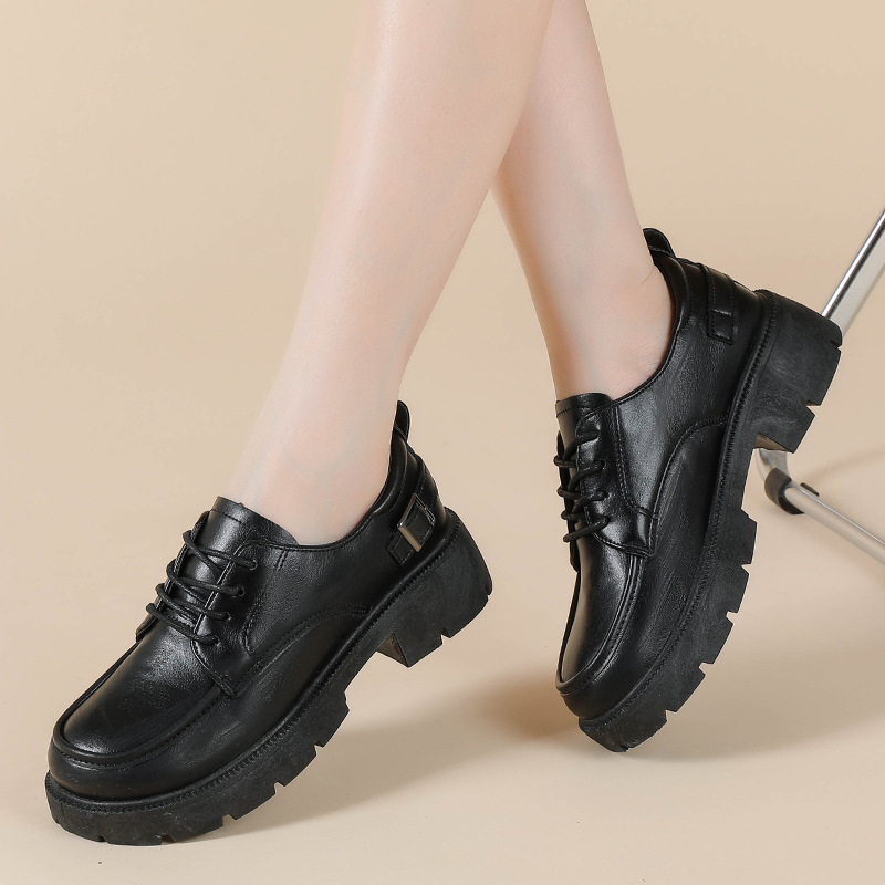 가을 2023 새로운 여성 신발 라운드 토 플랫 에나멜 가죽 레이스 업 브로그 스티칭 스팽글 영국 플랫폼 신발스토어 가기