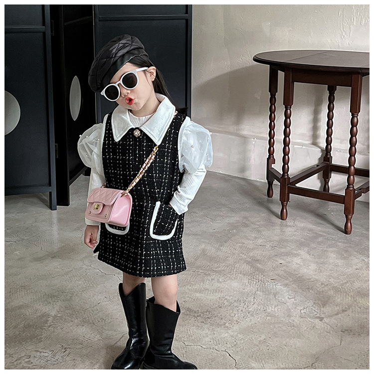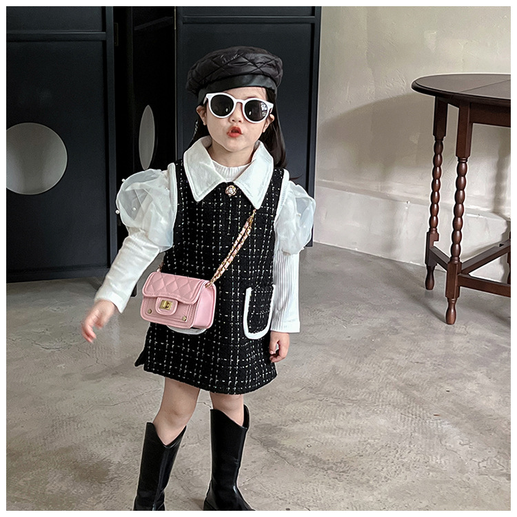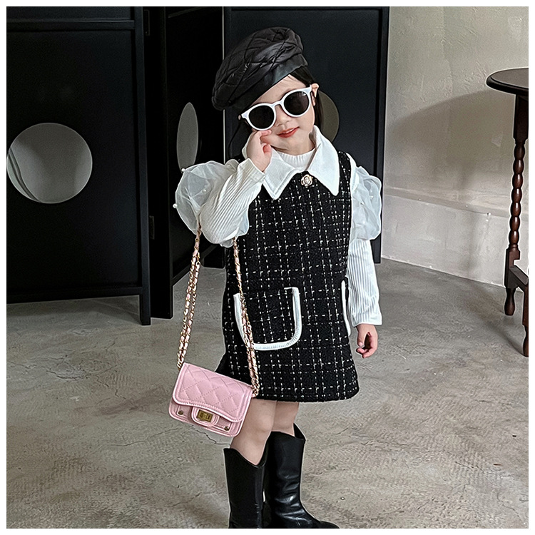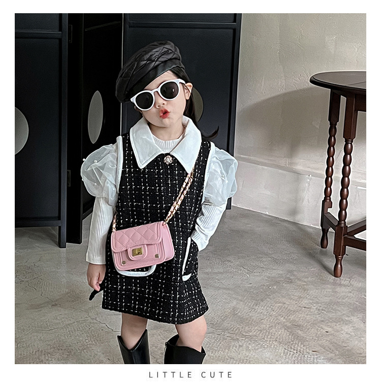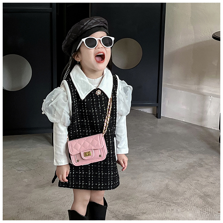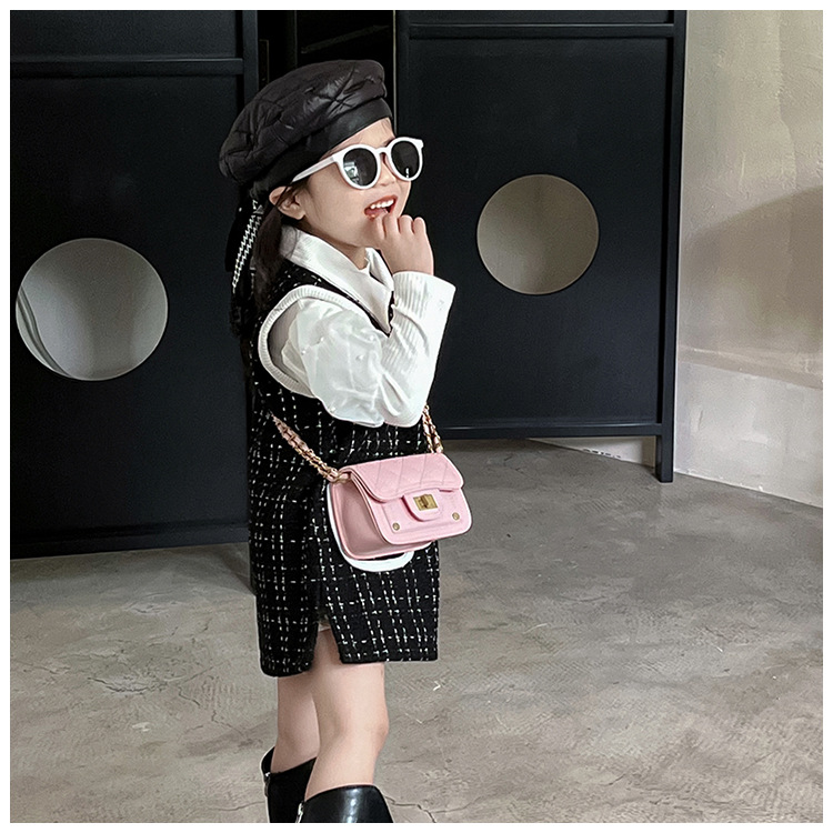가을과 겨울 새로운 어린이 가방 작은 샤넬 스타일 마름모꼴 여아 체인 크로스 바디 백 미니 패션 숄더백 동전 지갑스토어 가기