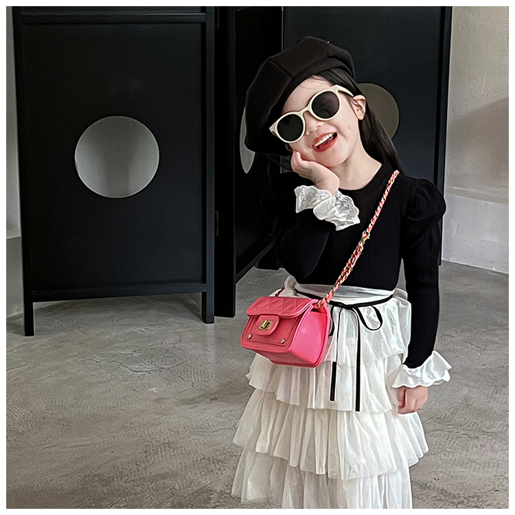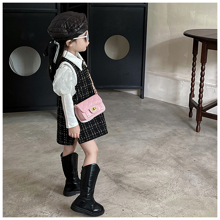 가을과 겨울 새로운 어린이 가방 작은 샤넬 스타일 마름모꼴 여아 체인 크로스 바디 백 미니 패션 숄더백 동전 지갑