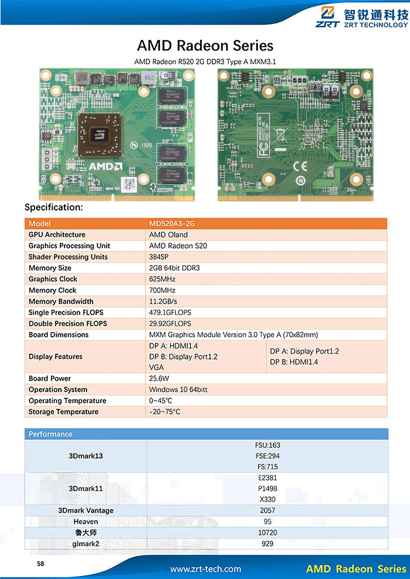 AMD 그래픽 카드 R520 2G 64bit DDR 3 256*16 2HDMI + VGA MXM 유형 A 6L스토어 가기