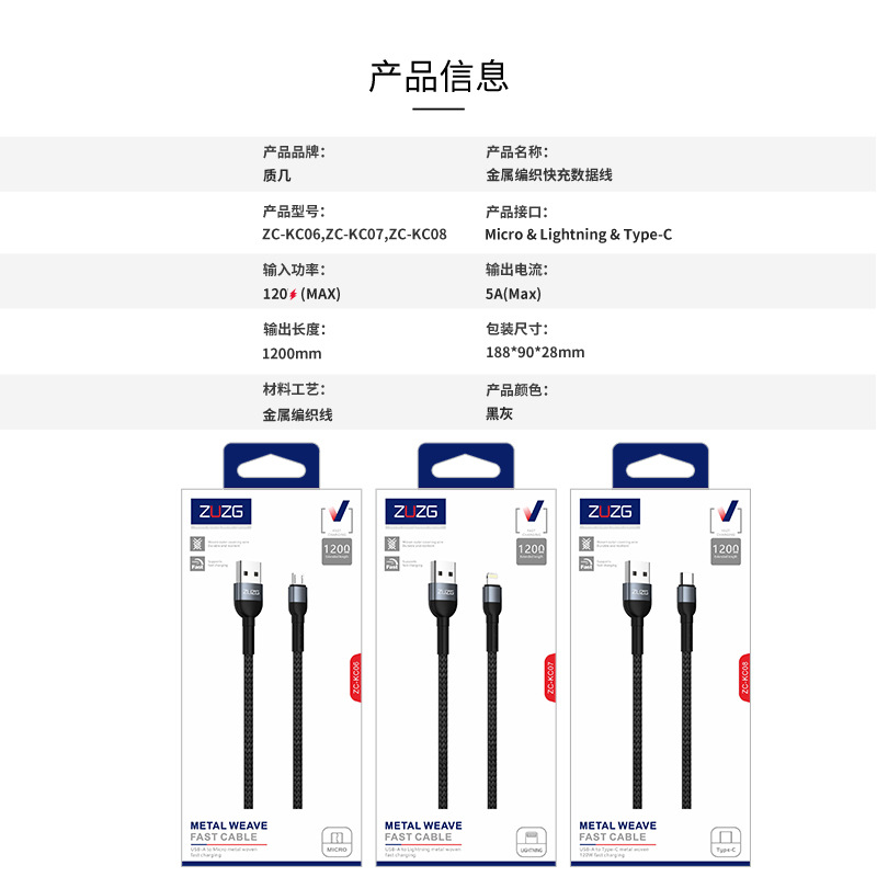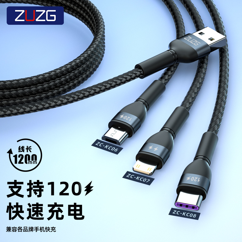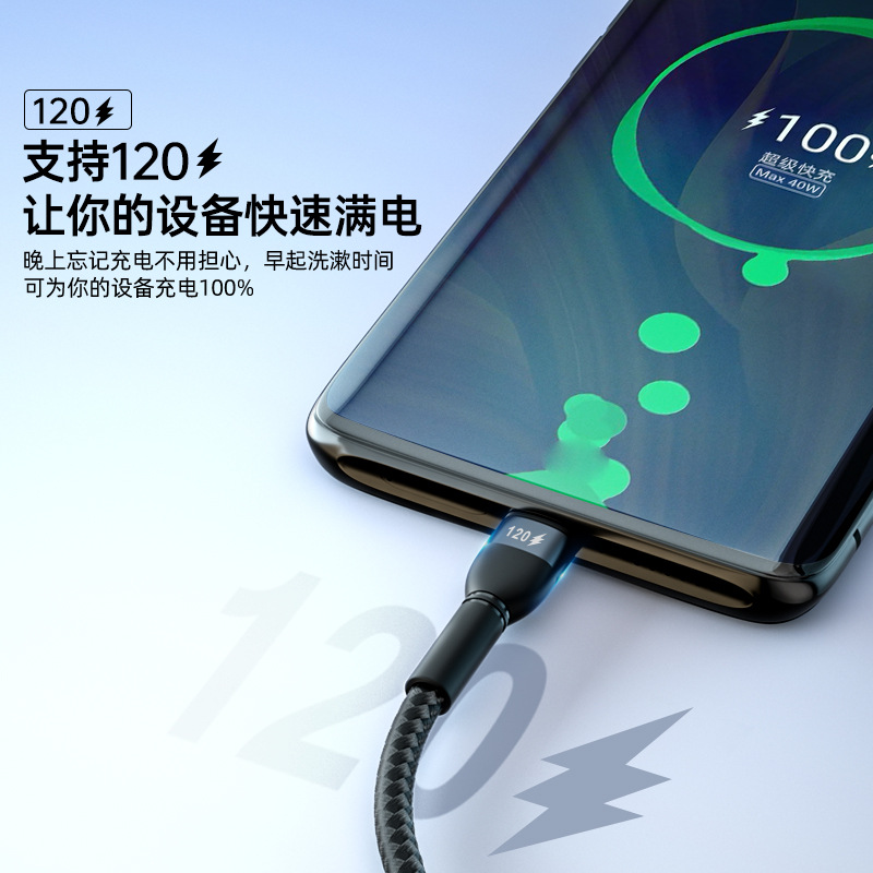 ZUZG 편조 데이터 케이블은 120W 지원하며, 1.2m개의 애플, 화웨이, 안드로이드 고속 충전 휴대폰 충전 케이블에 적합합니다.스토어 가기