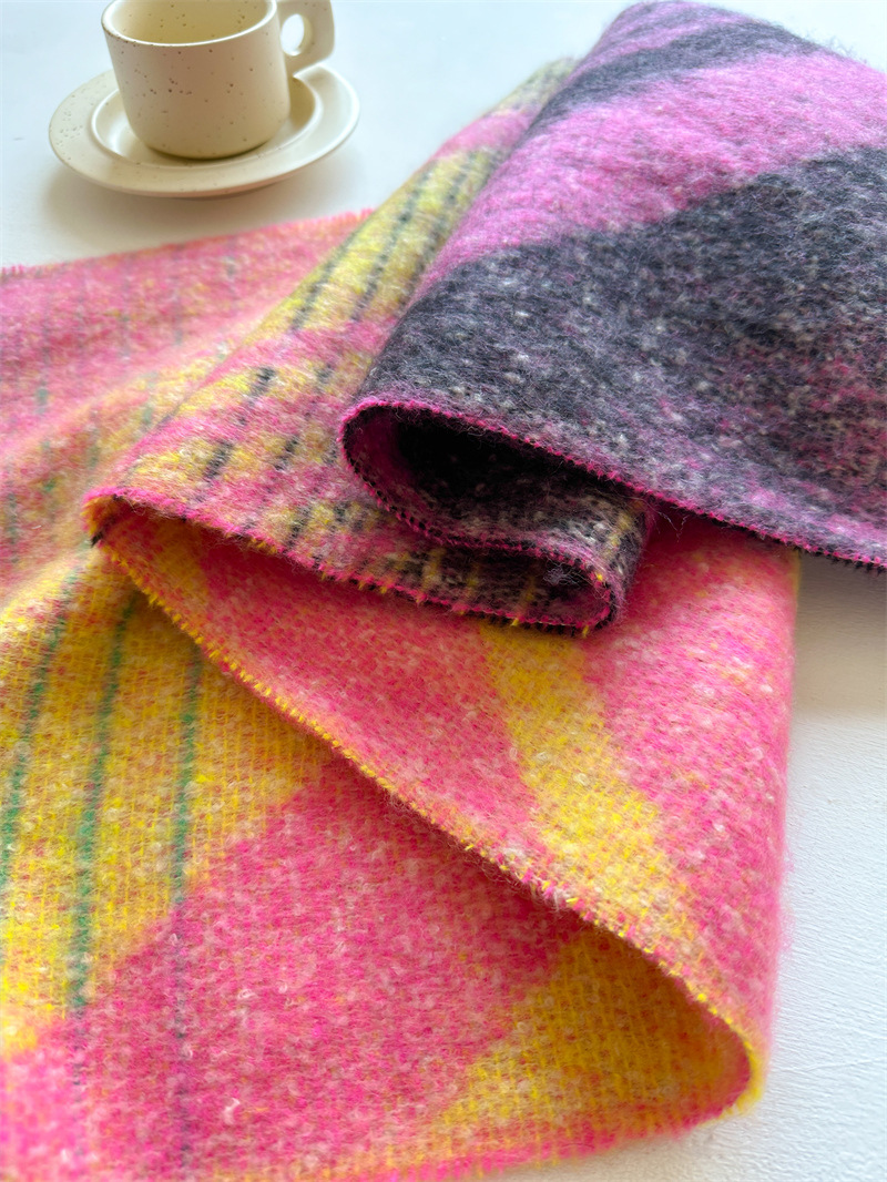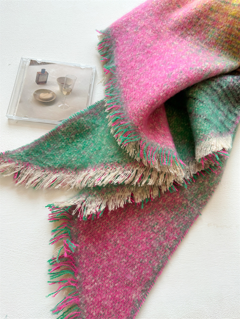 크로스 보더 핫 셀링 캐시미어 스카프 여성용 두꺼운 연장 색상 매칭 가을과 겨울 모피 가장자리 스카프 새로운 스타일 따뜻한 스카프스토어 가기