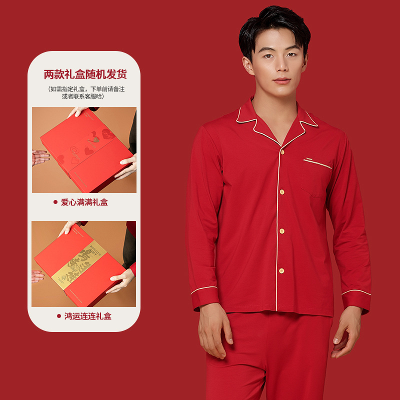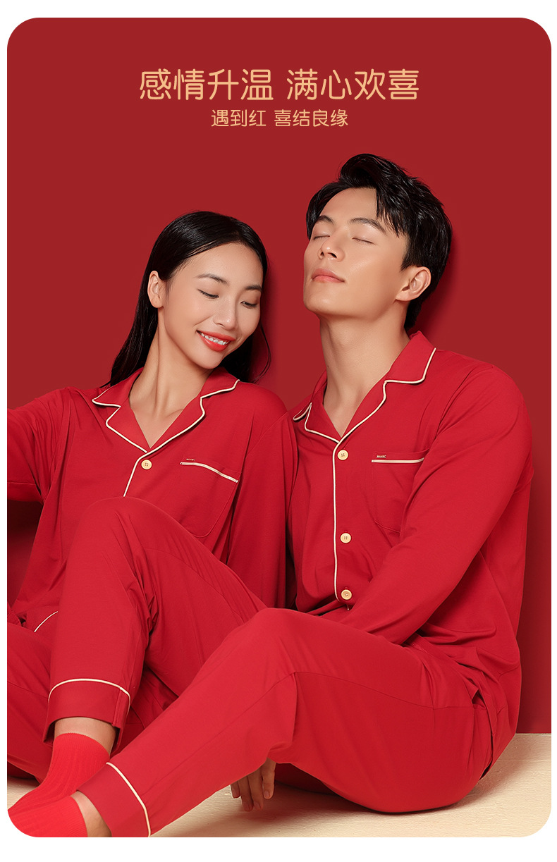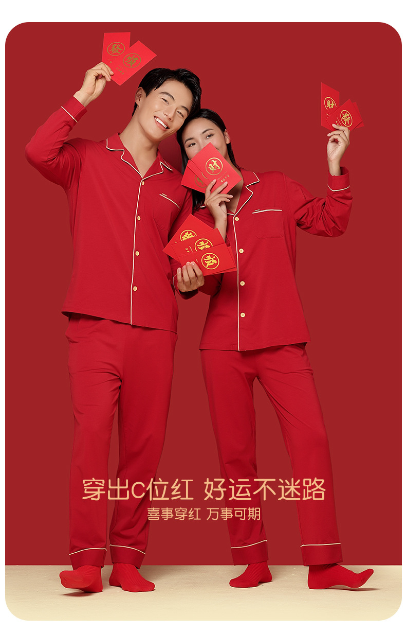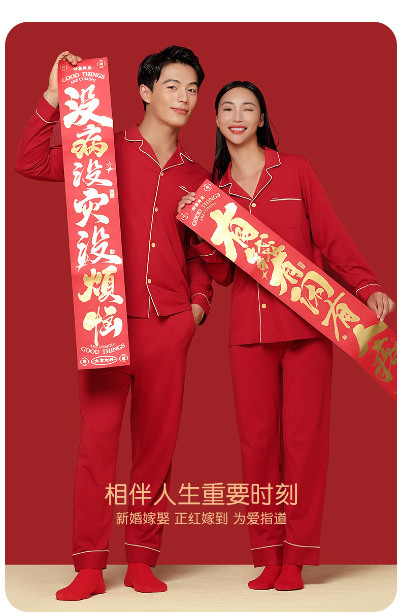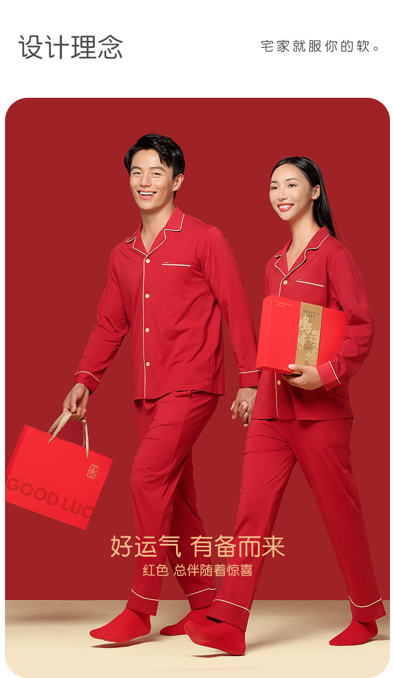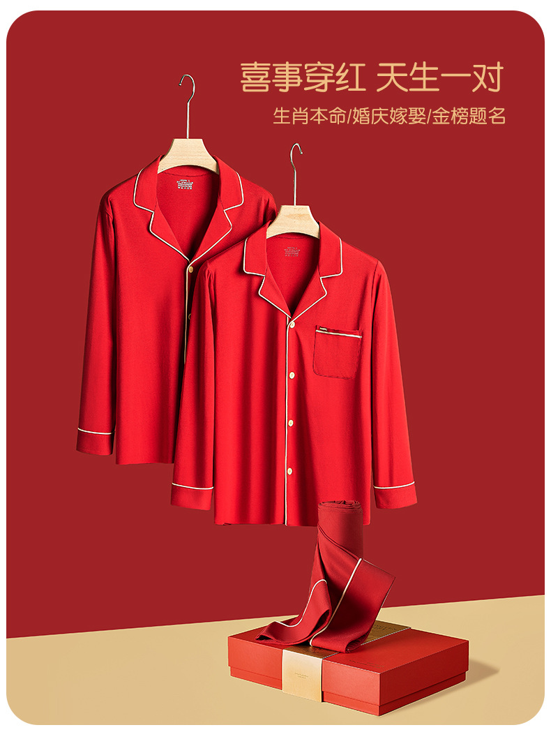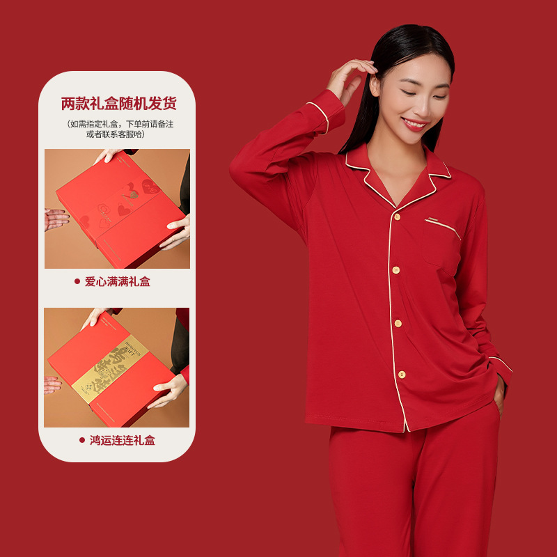 [Shun Feng Bao You] 60 면 모달 커플 잠옷 결혼식 빨간 가정 옷 재고 빠른 머리