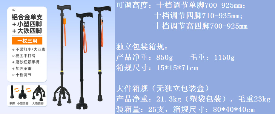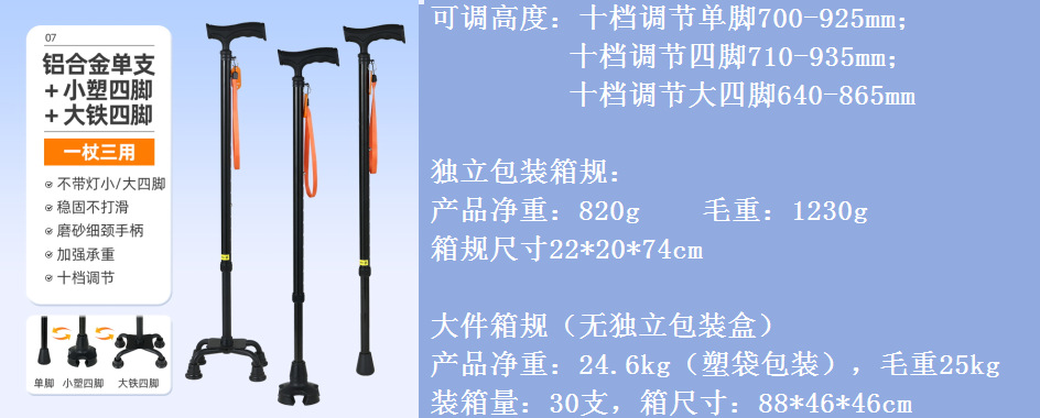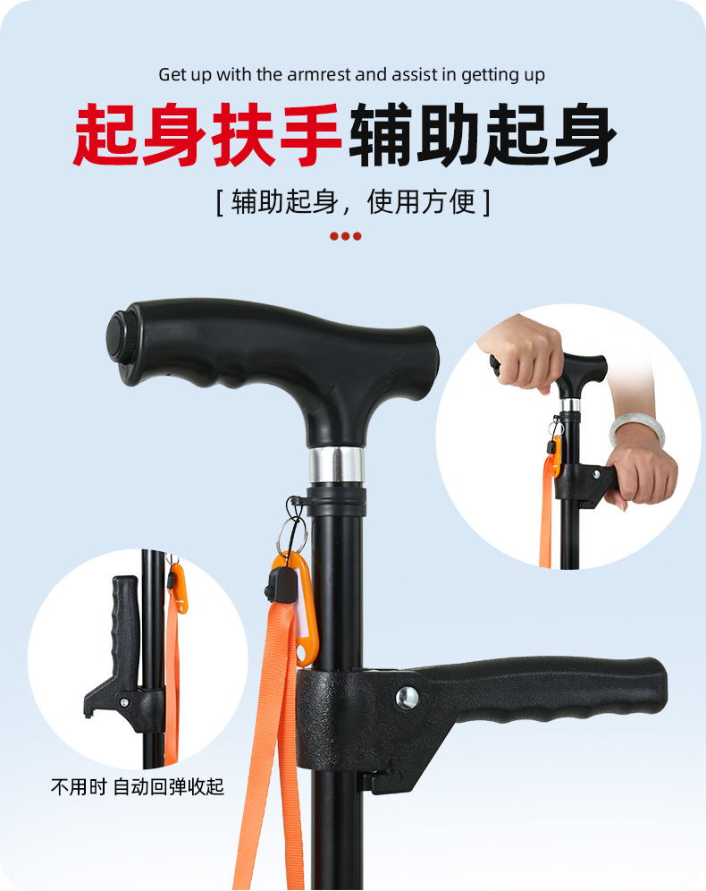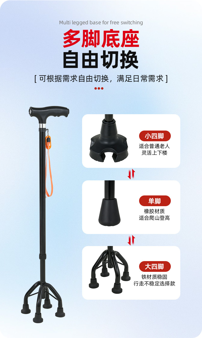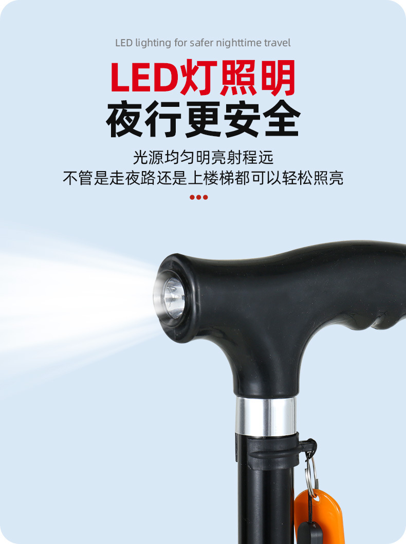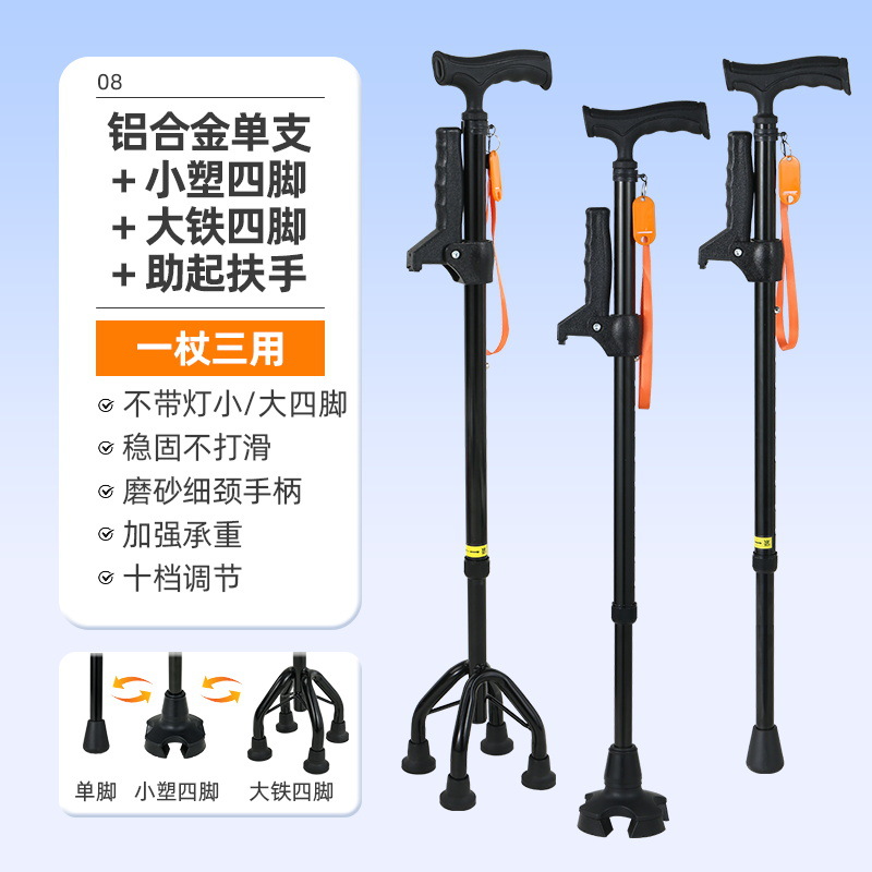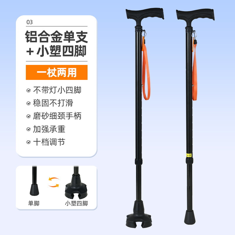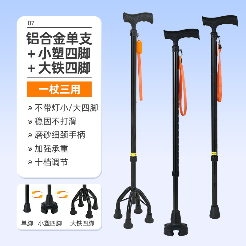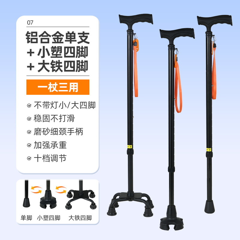 노인을 위한 로퍼 알루미늄 합금 4발 지팡이, 조명이 있는 다기능 지팡이, 미끄럼 방지 지팡이, 배송스토어 가기