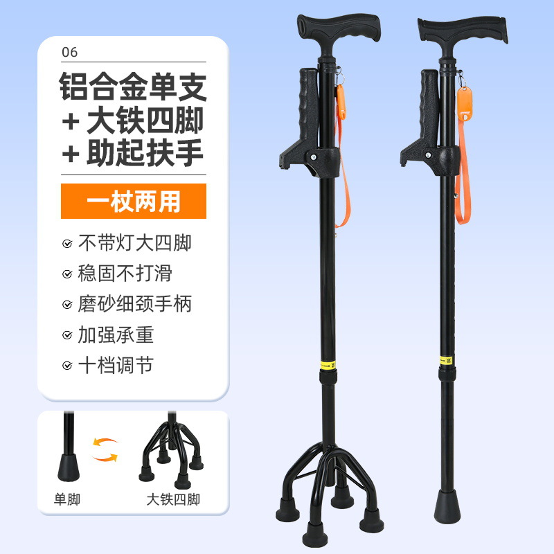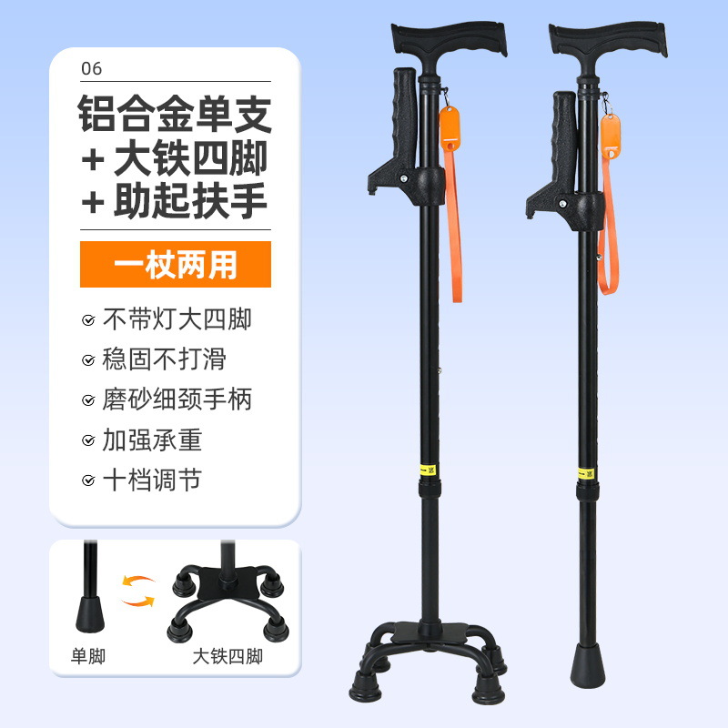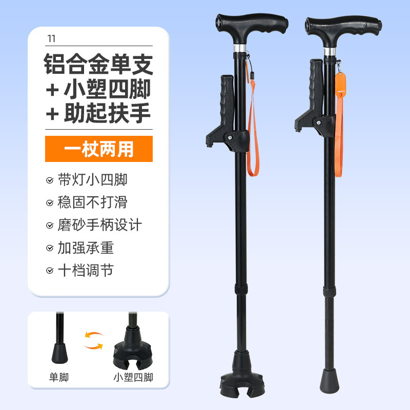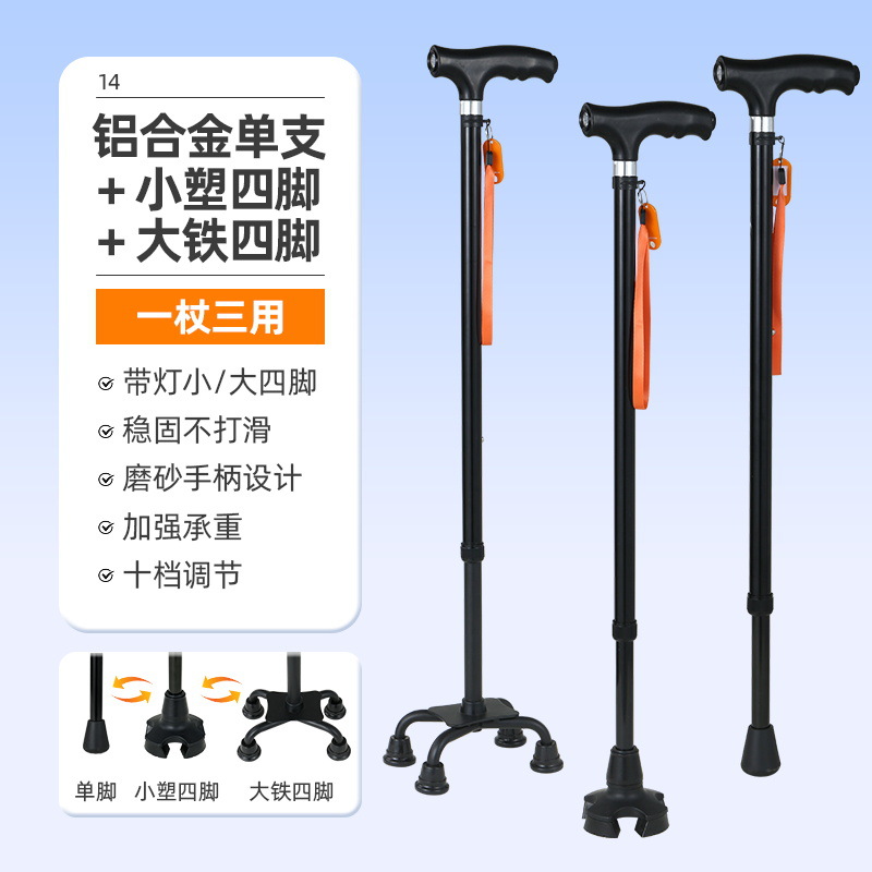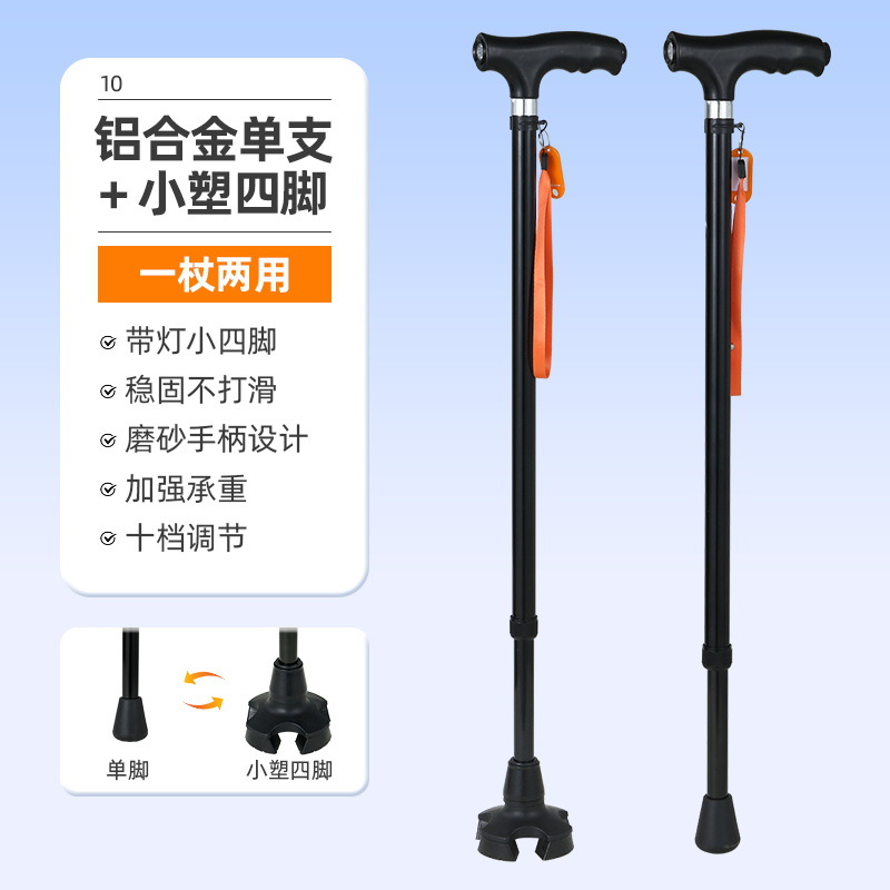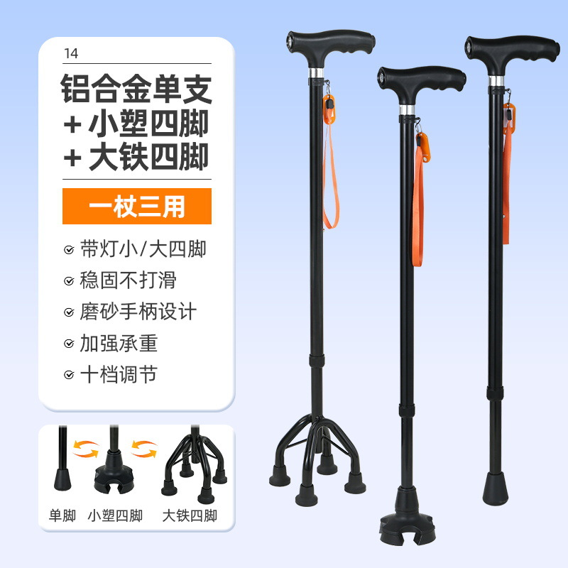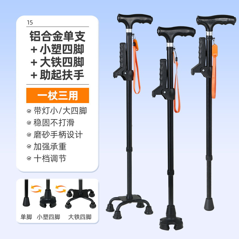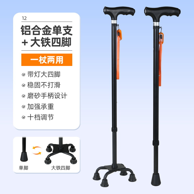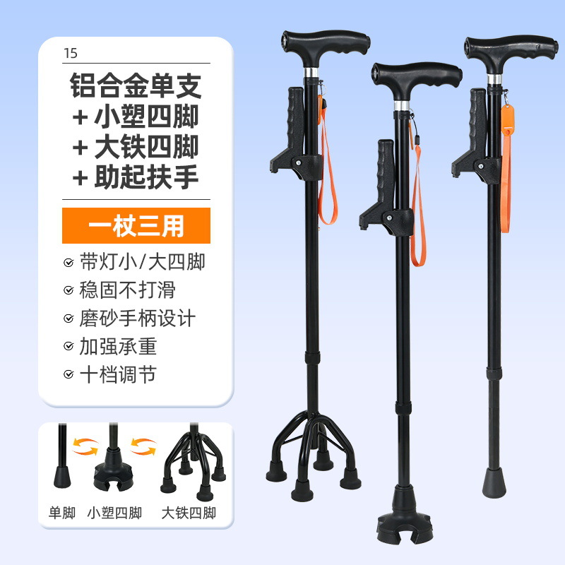 노인을 위한 로퍼 알루미늄 합금 4발 지팡이, 조명이 있는 다기능 지팡이, 미끄럼 방지 지팡이, 배송