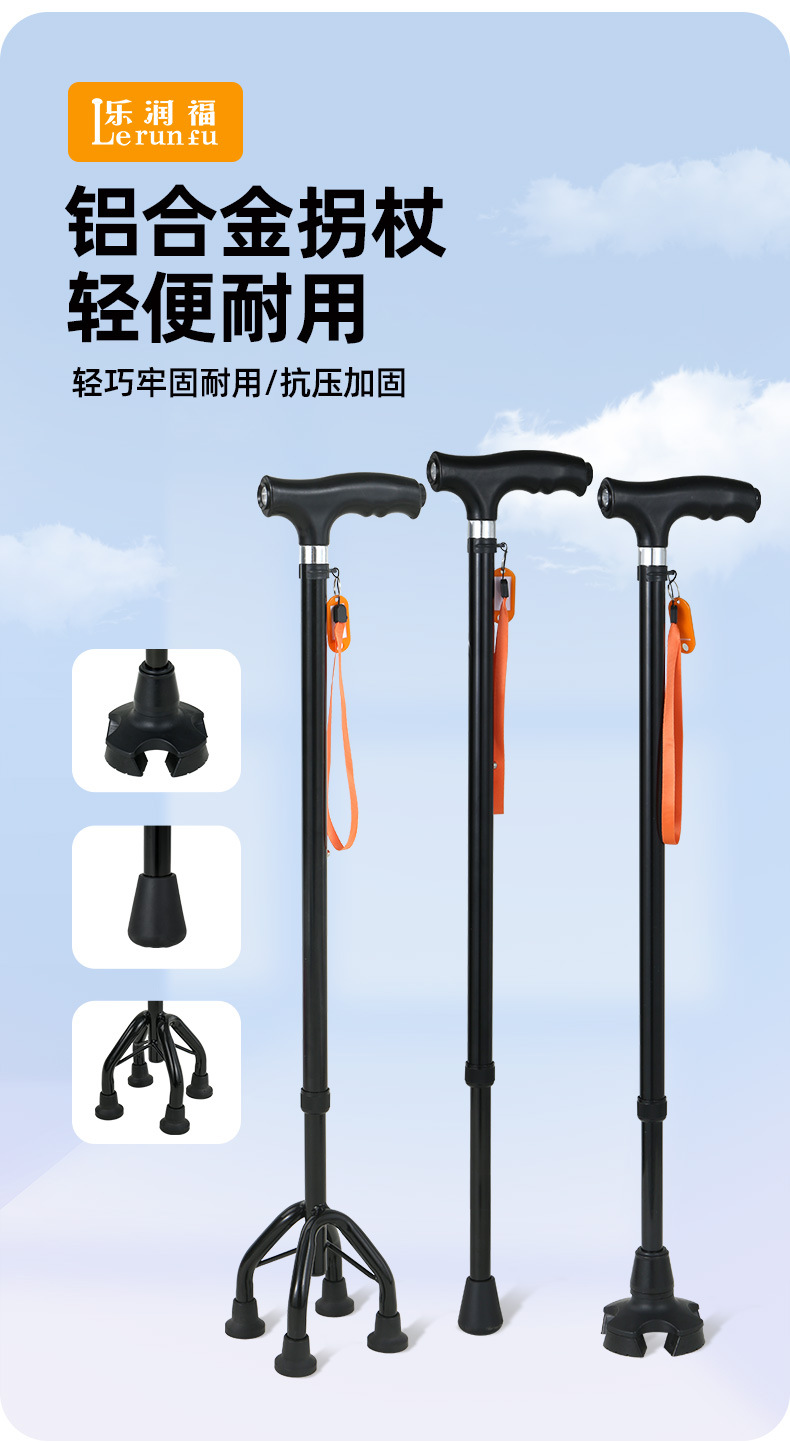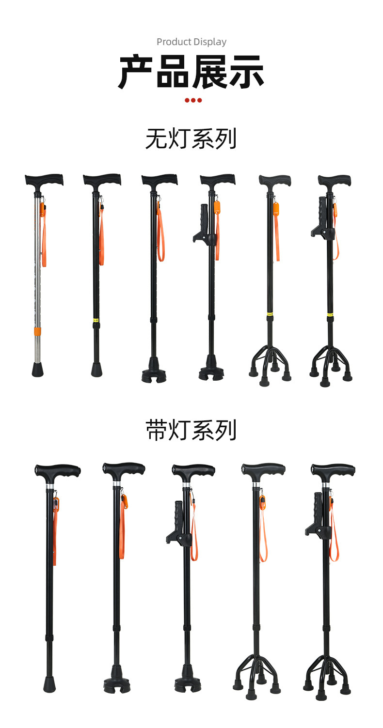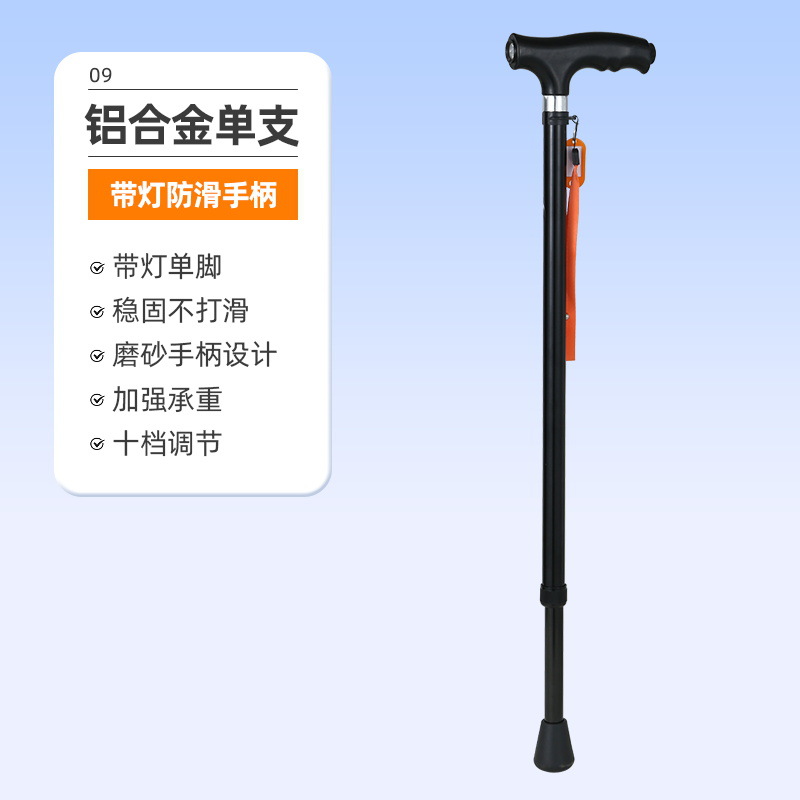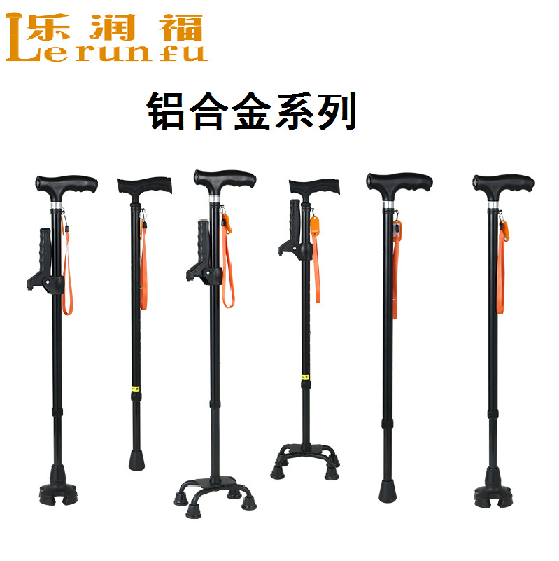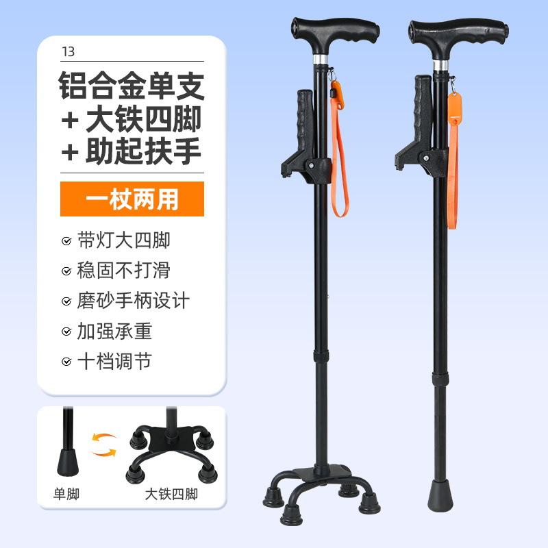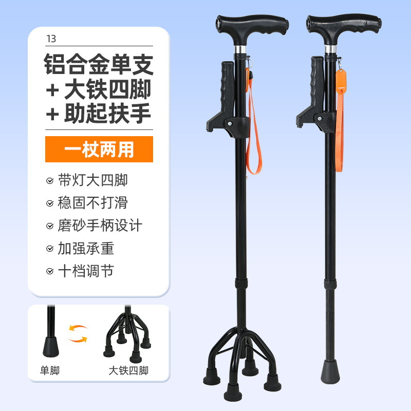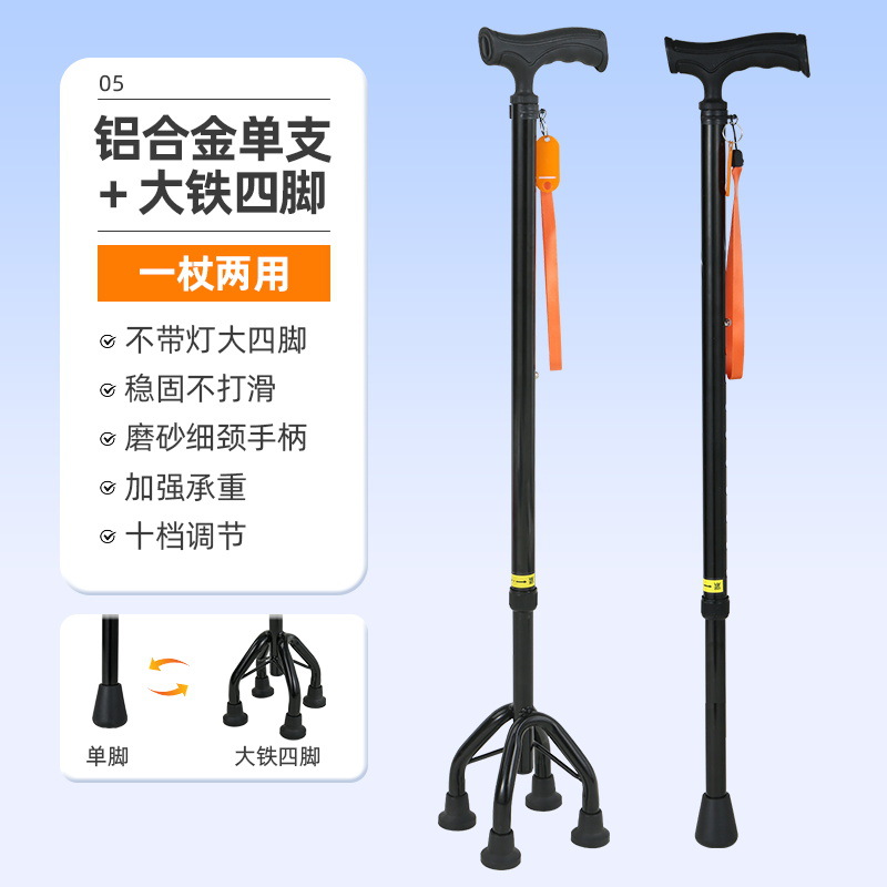 노인을 위한 로퍼 알루미늄 합금 4발 지팡이, 조명이 있는 다기능 지팡이, 미끄럼 방지 지팡이, 배송