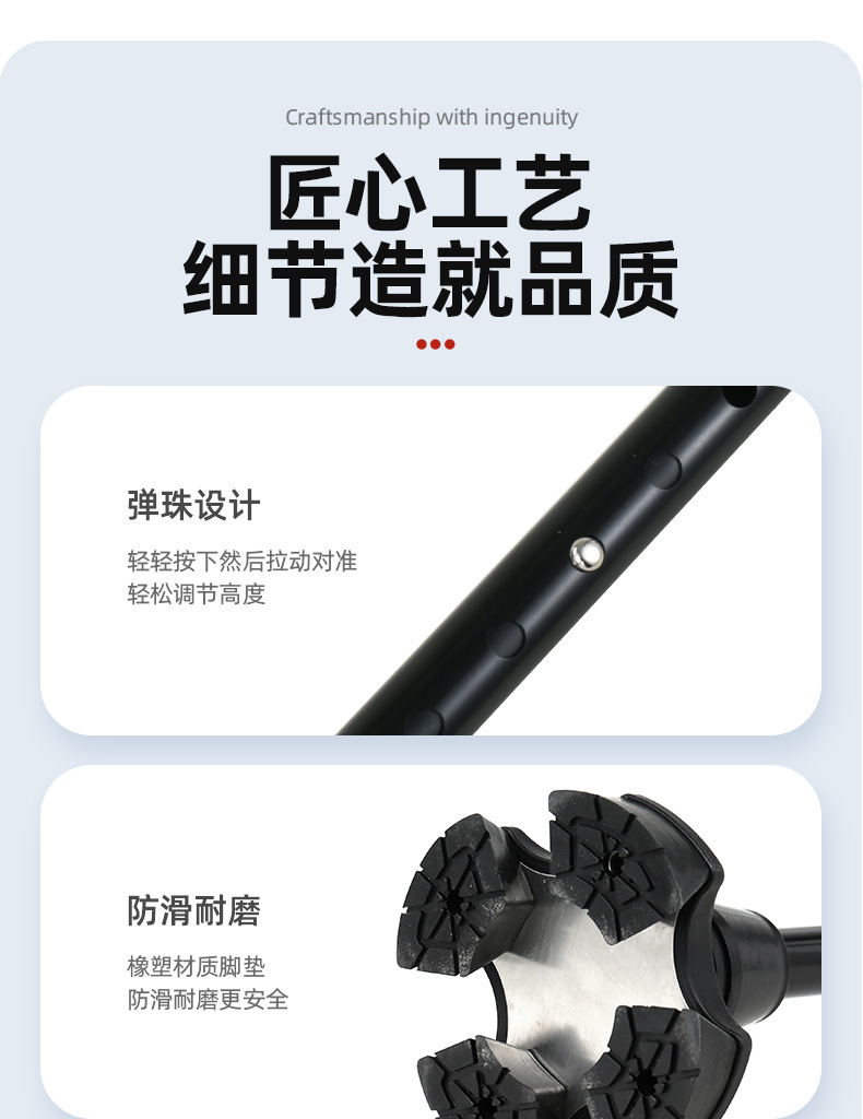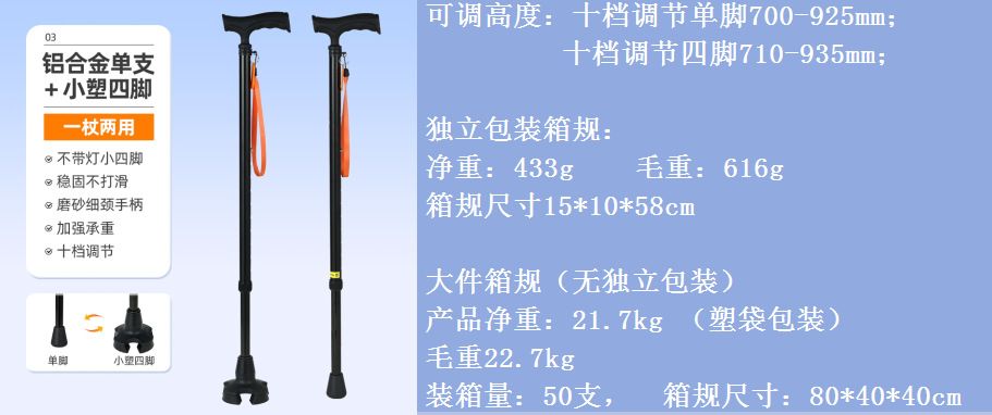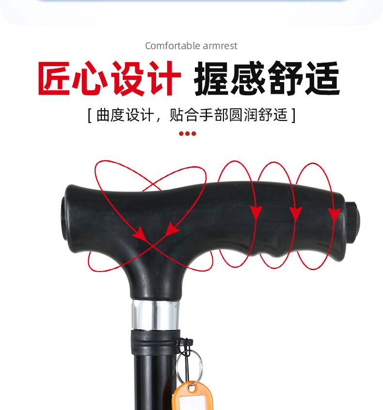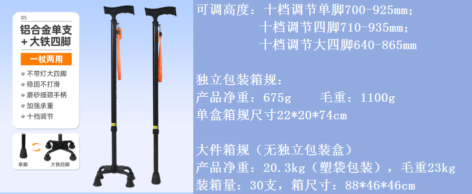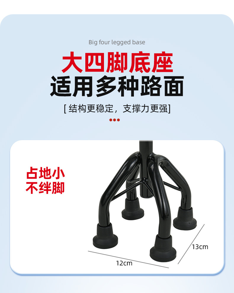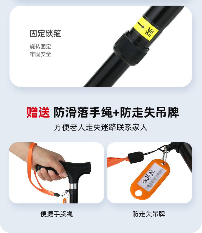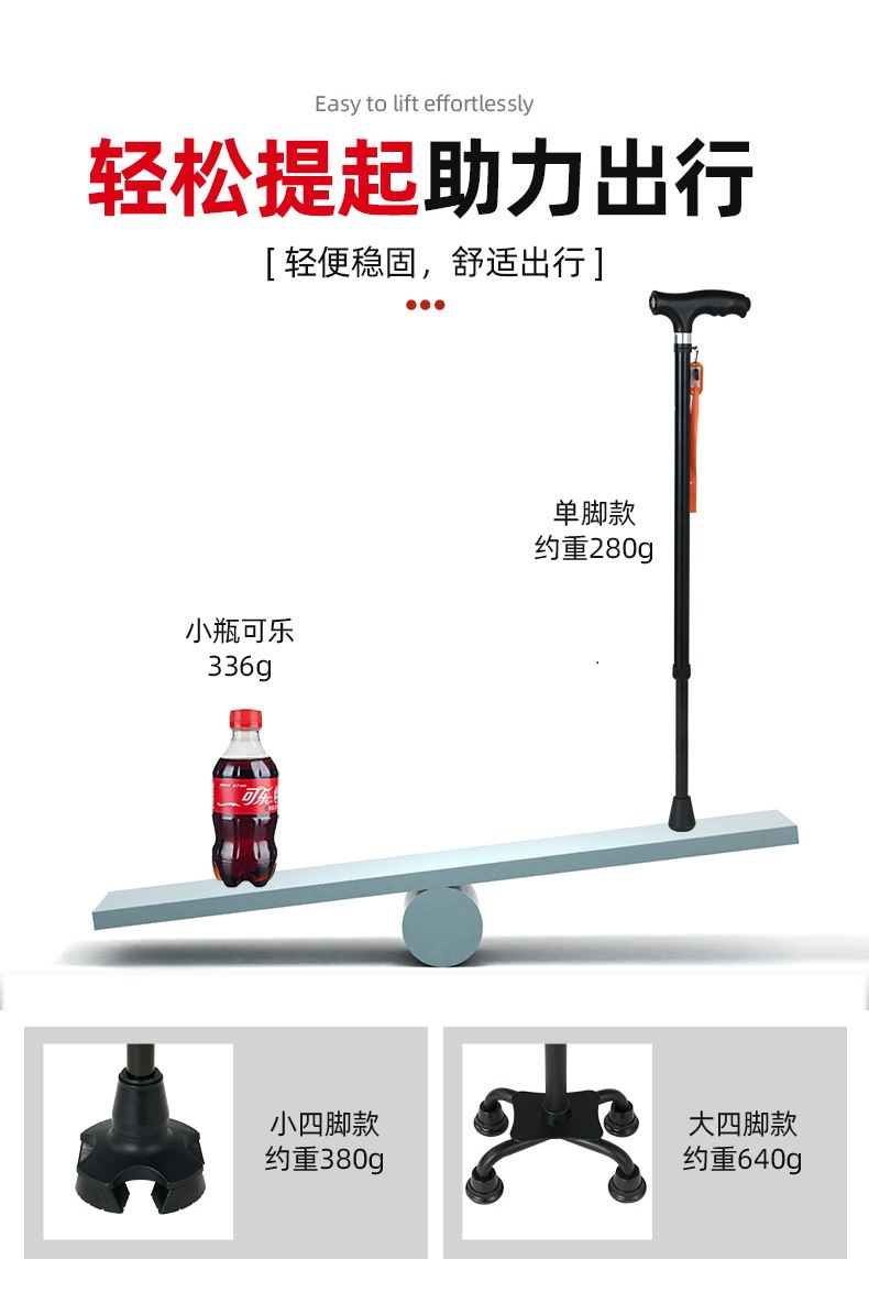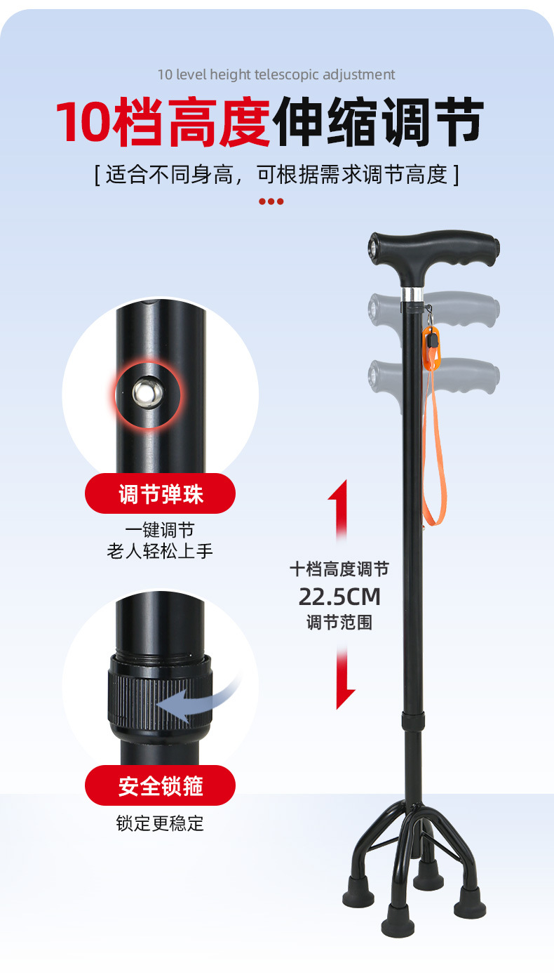 노인을 위한 로퍼 알루미늄 합금 4발 지팡이, 조명이 있는 다기능 지팡이, 미끄럼 방지 지팡이, 배송