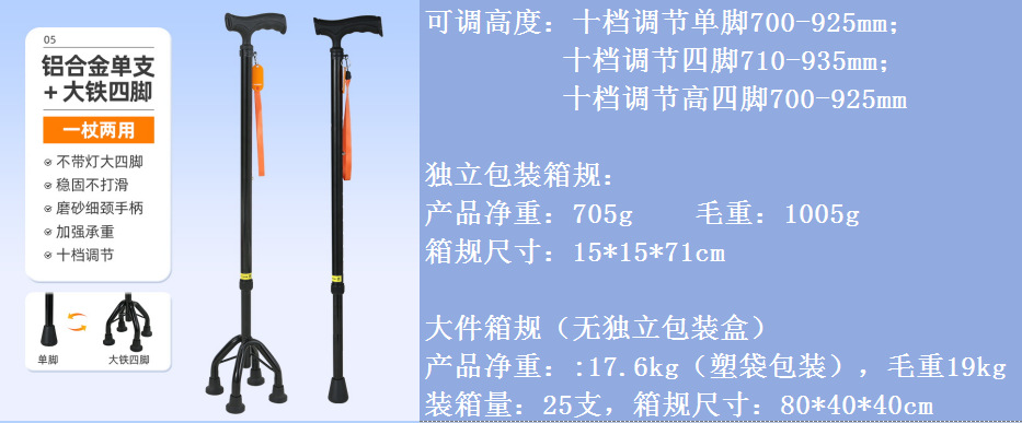• [조명 없음] 마사지 손잡이(단일발 + 높은 4개 발 - 겸용 모델)