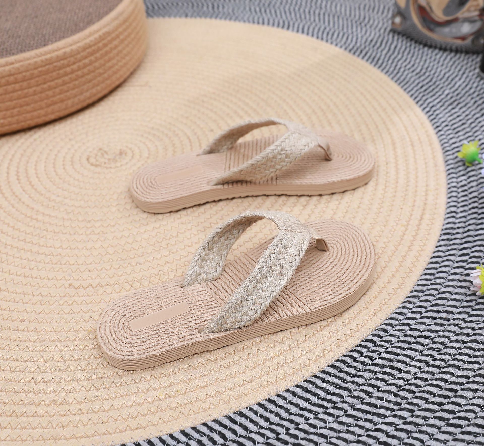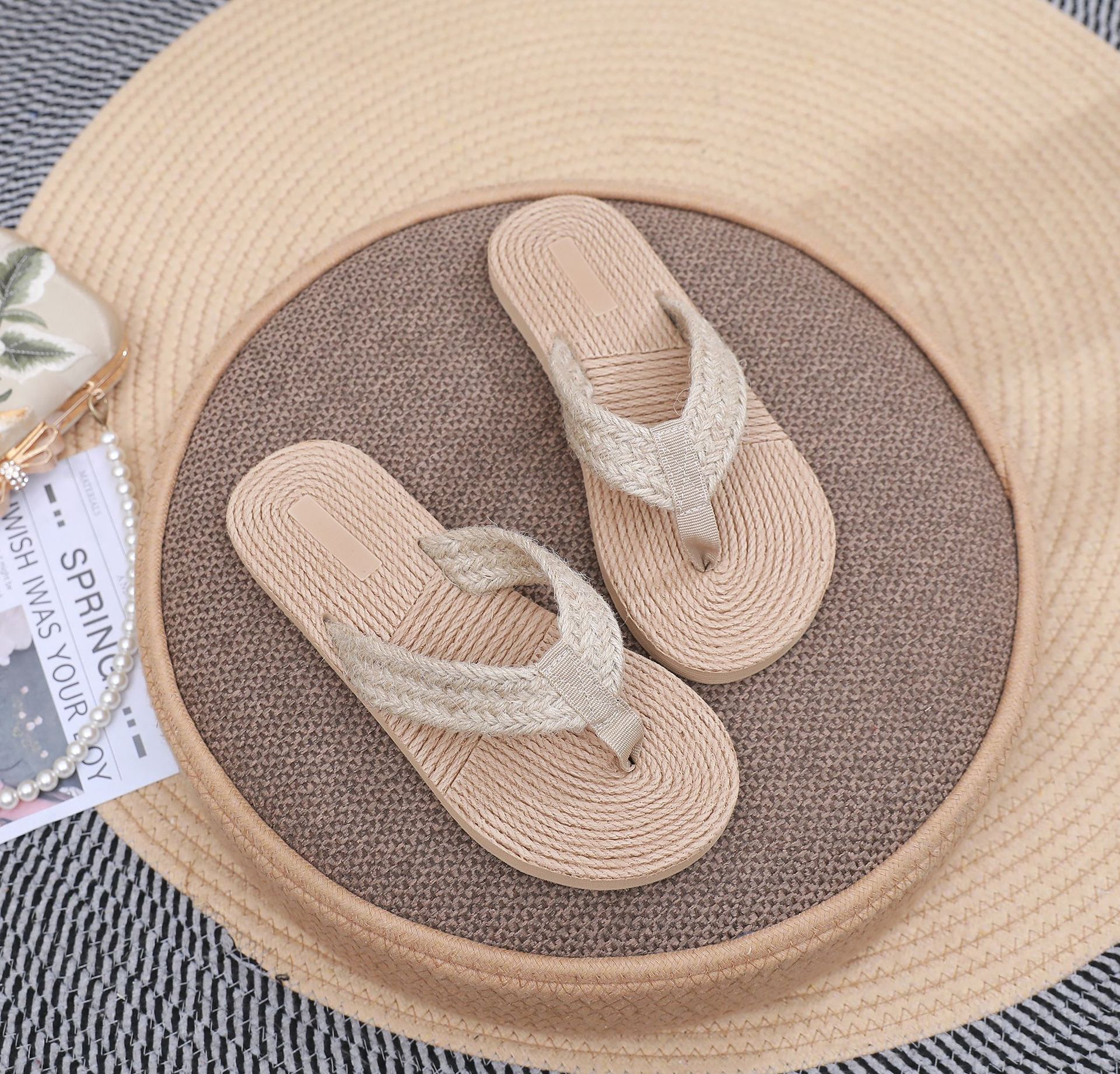 에스닉 스타일 모조 밀짚 여행 모조 대마 바닥 여성 샌들과 슬리퍼 한류 바깥쪽으로 패션 여성용 비치 슬리퍼스토어 가기