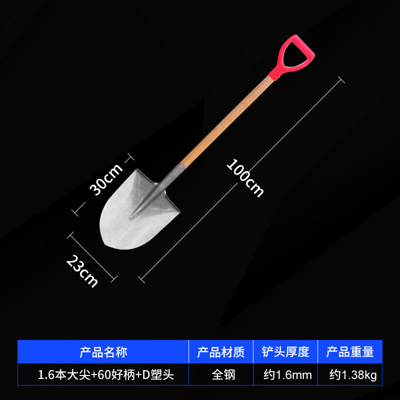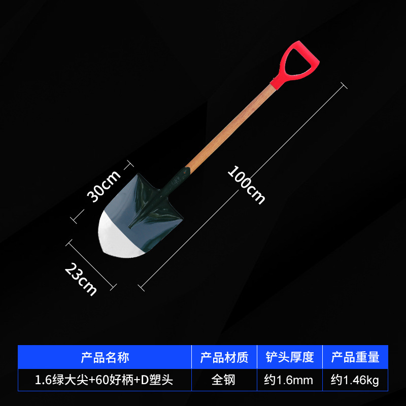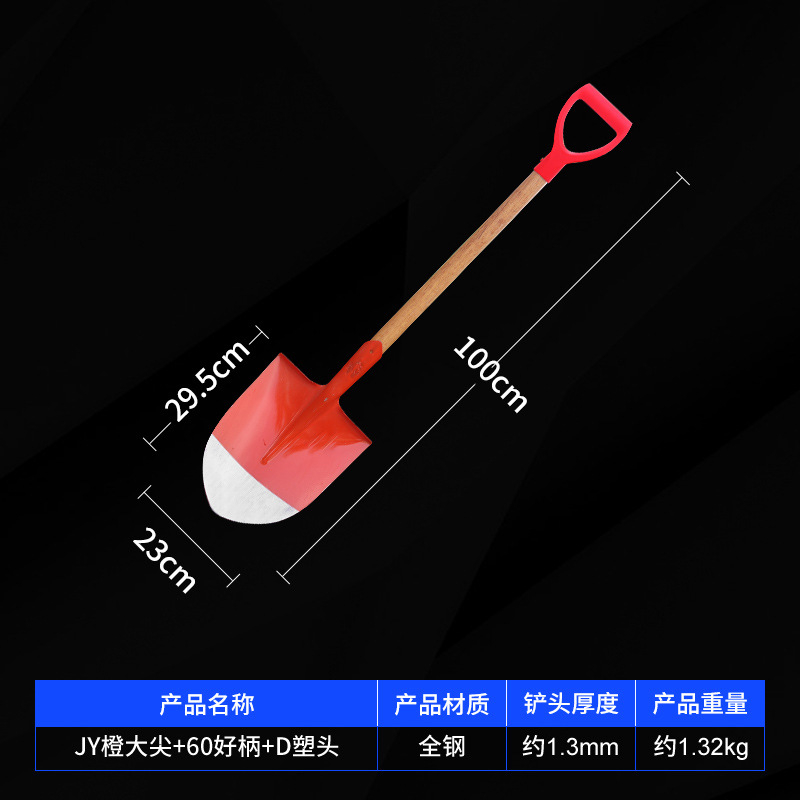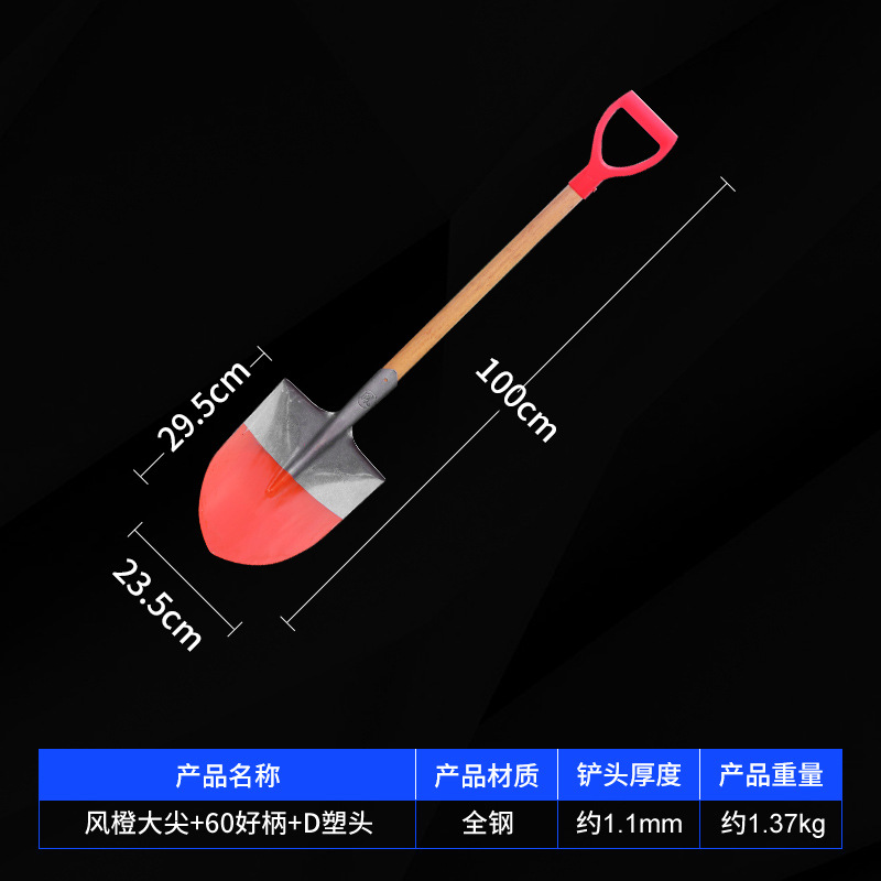 • 8934-풍성 대형 팁 + 풀 레드 아이언 우드 D 핸들 소방 삽