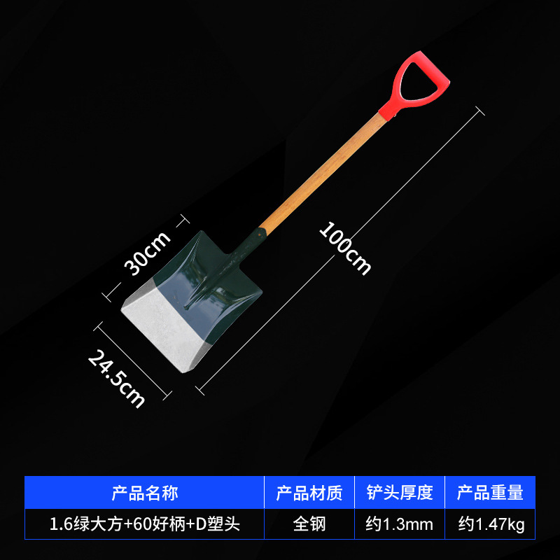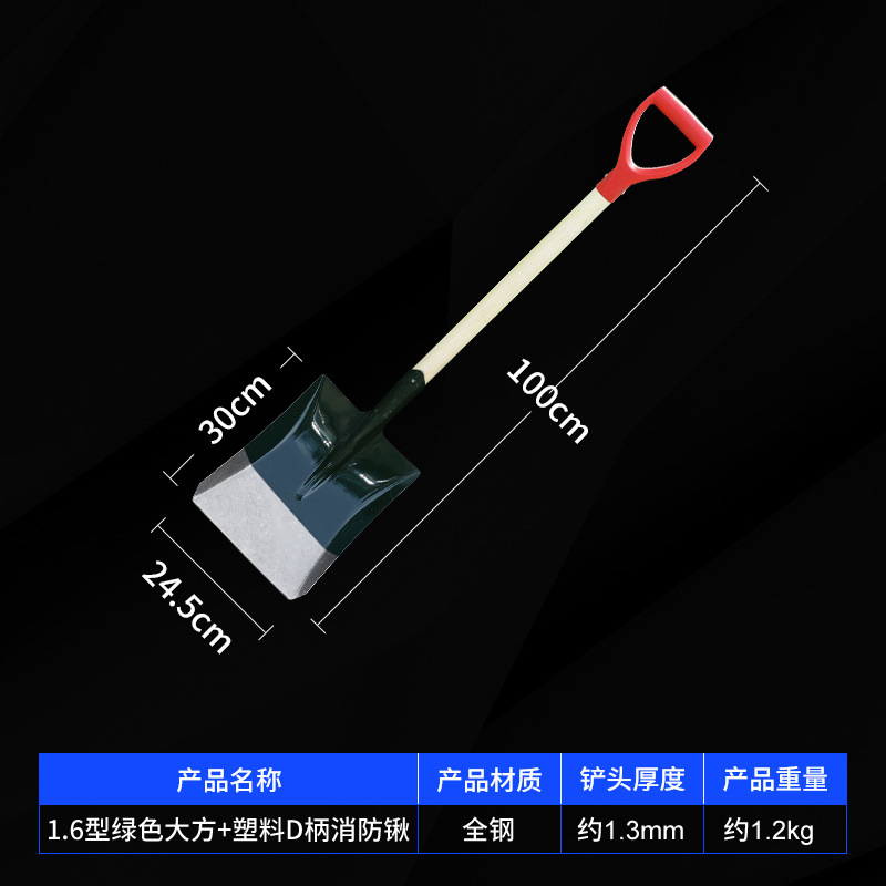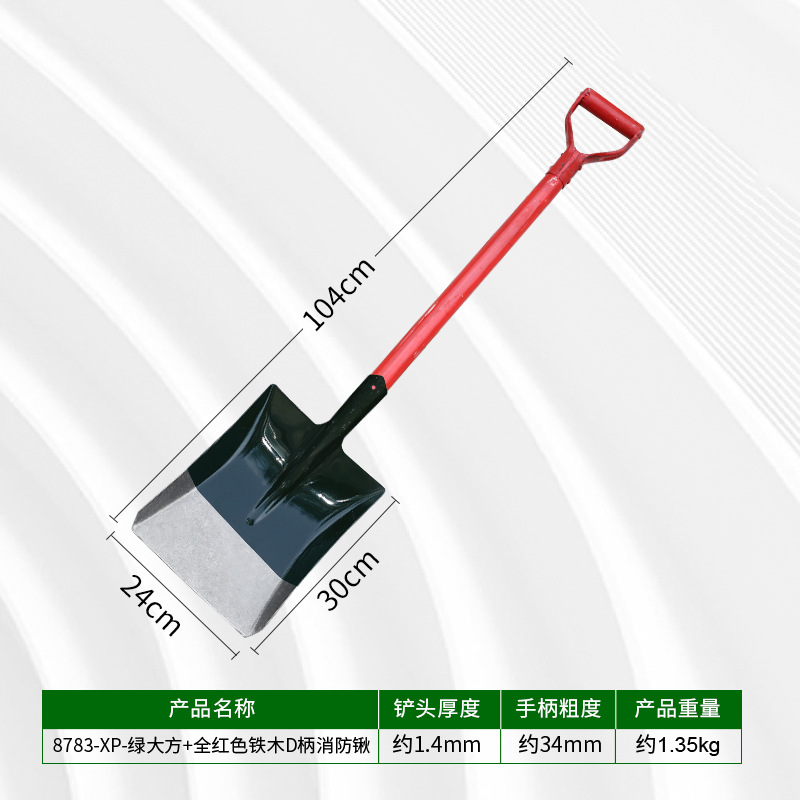 • 8783-XP-그린 빅 스퀘어 모든 레드 아이언 우드 D 핸들 화재 삽