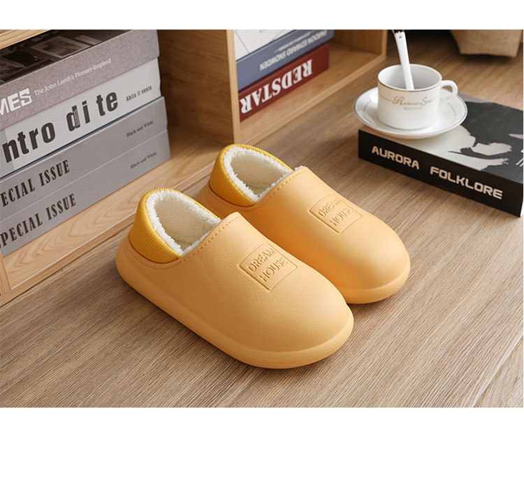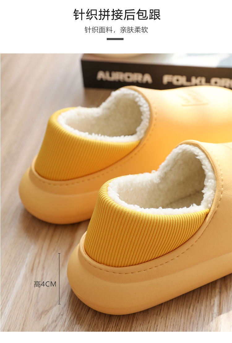 방수 면 슬리퍼 여성 가을과 겨울 가방 힐 두꺼운 밑창 홈 남성 커플 EVA 실내 및 실외 착용 플러시 따뜻한 면화 신발