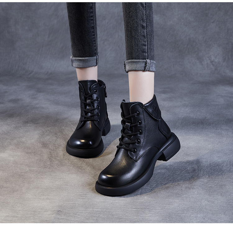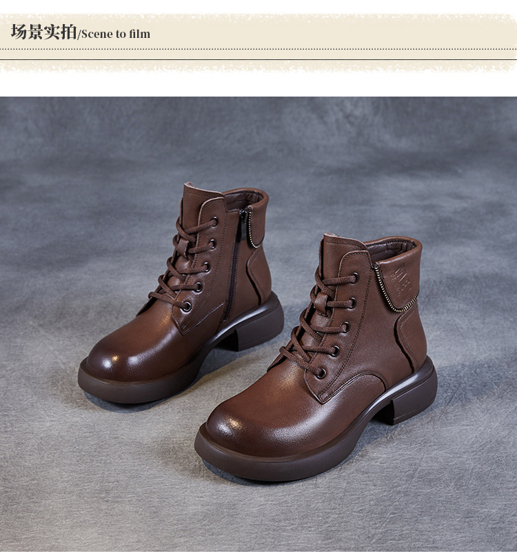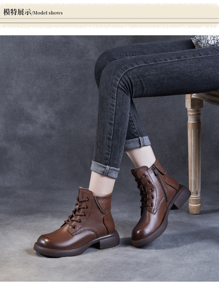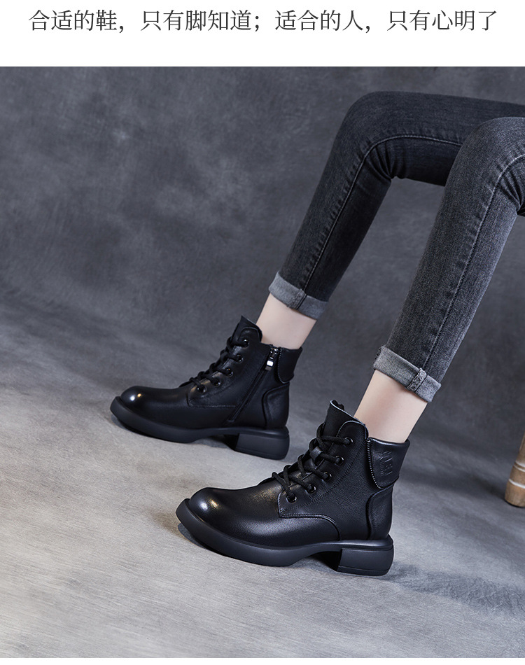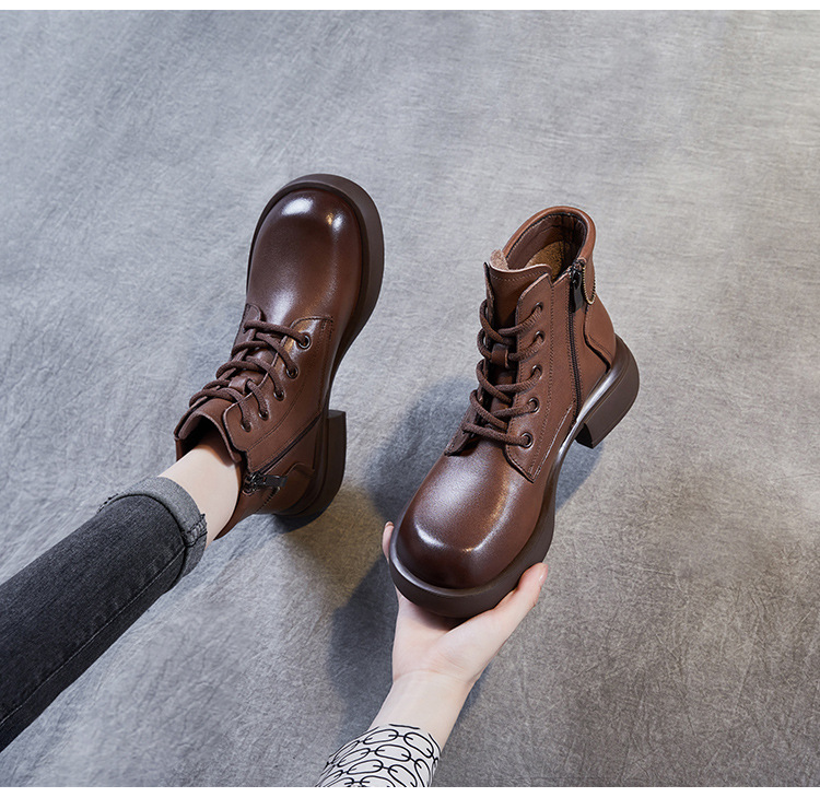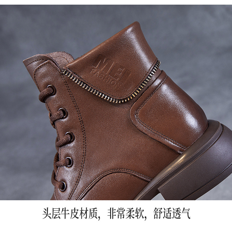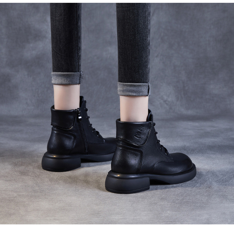 영국 스타일 레트로 정품 가죽 마틴 부츠 여자의 가을 2023 새로운 사이드 지퍼 레이스 업 짧은 부츠 미디엄 다큐멘터리 부츠