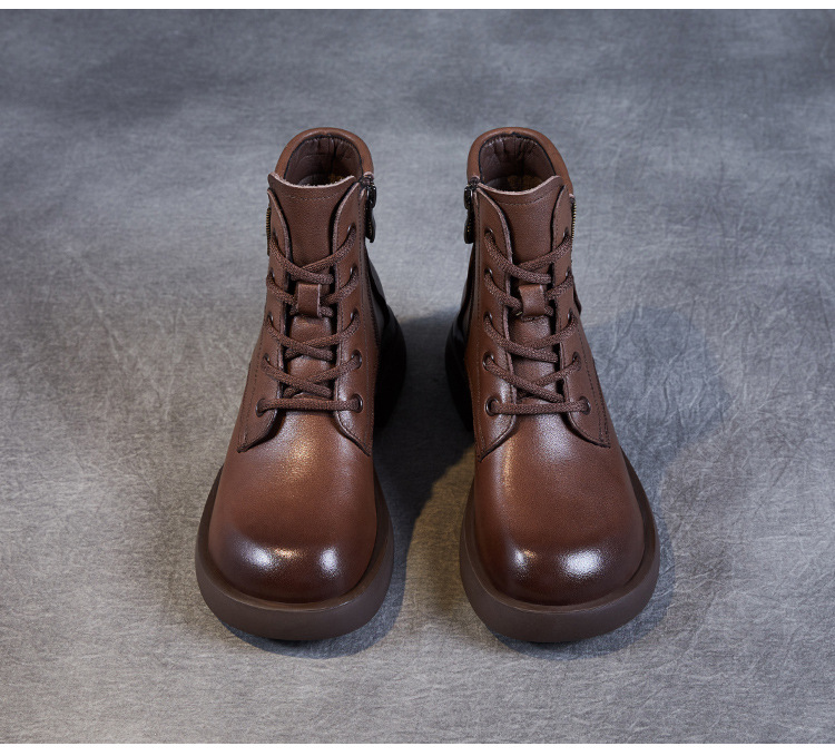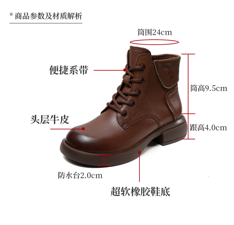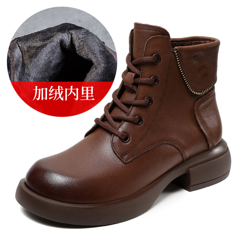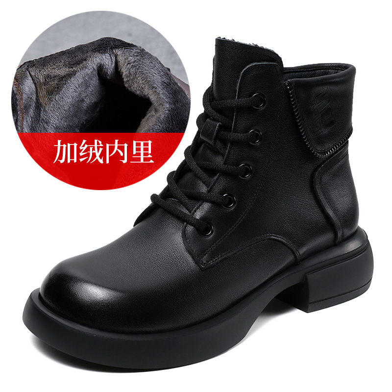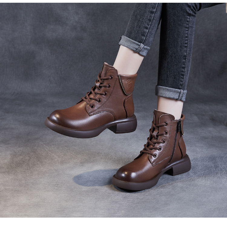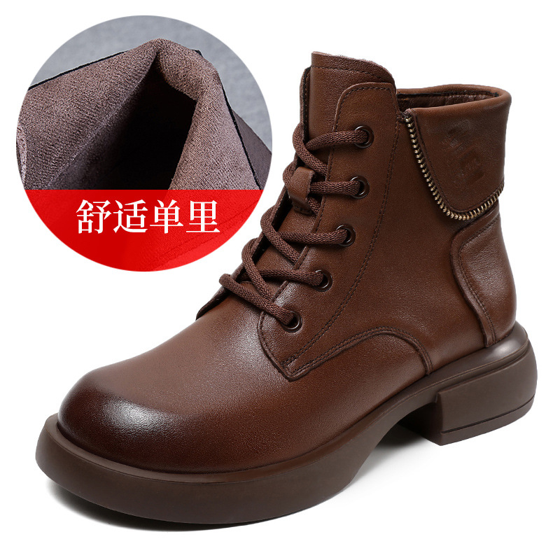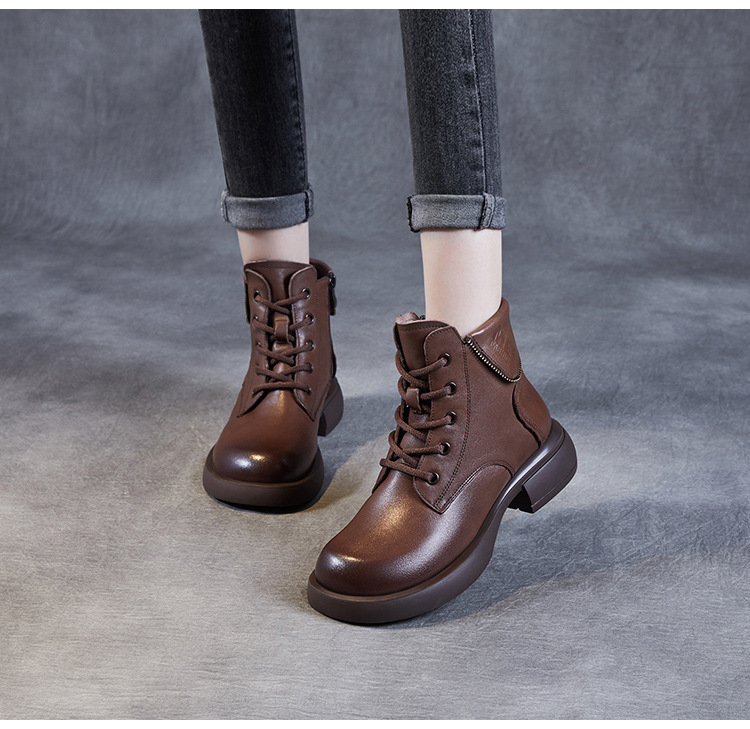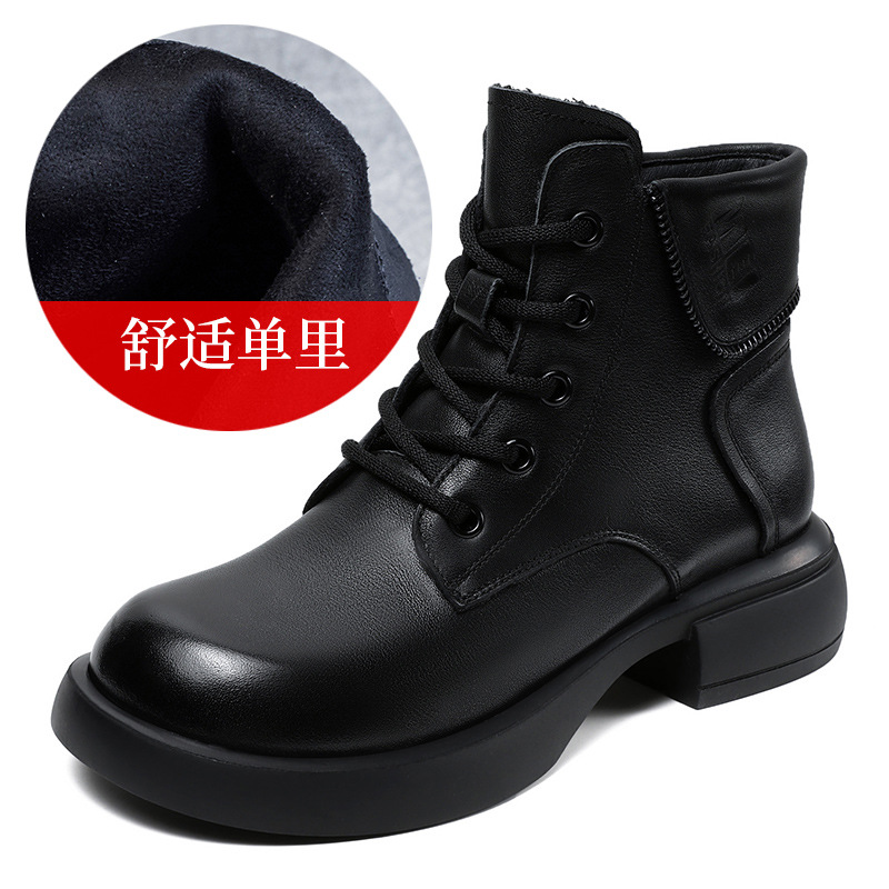 영국 스타일 레트로 정품 가죽 마틴 부츠 여자의 가을 2023 새로운 사이드 지퍼 레이스 업 짧은 부츠 미디엄 다큐멘터리 부츠