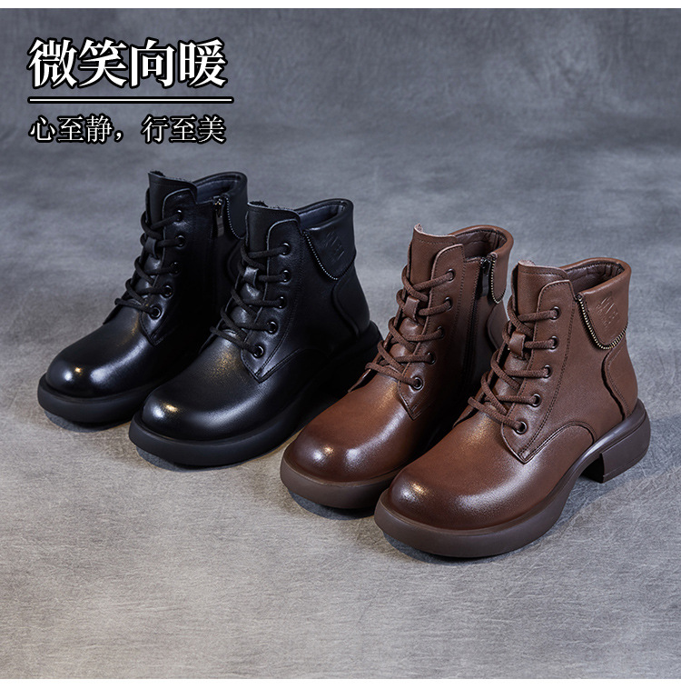 영국 스타일 레트로 정품 가죽 마틴 부츠 여자의 가을 2023 새로운 사이드 지퍼 레이스 업 짧은 부츠 미디엄 다큐멘터리 부츠스토어 가기