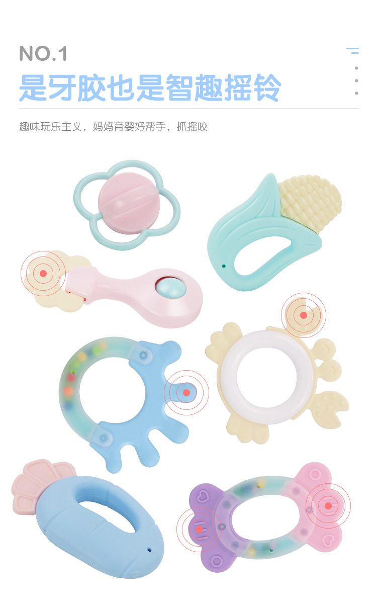 [국경 간 직접 판매] 아기 삶은 딸랑이 장난감 신생아 0-6-12 개월 어린이 0-1 조기 교육 치아 젤스토어 가기